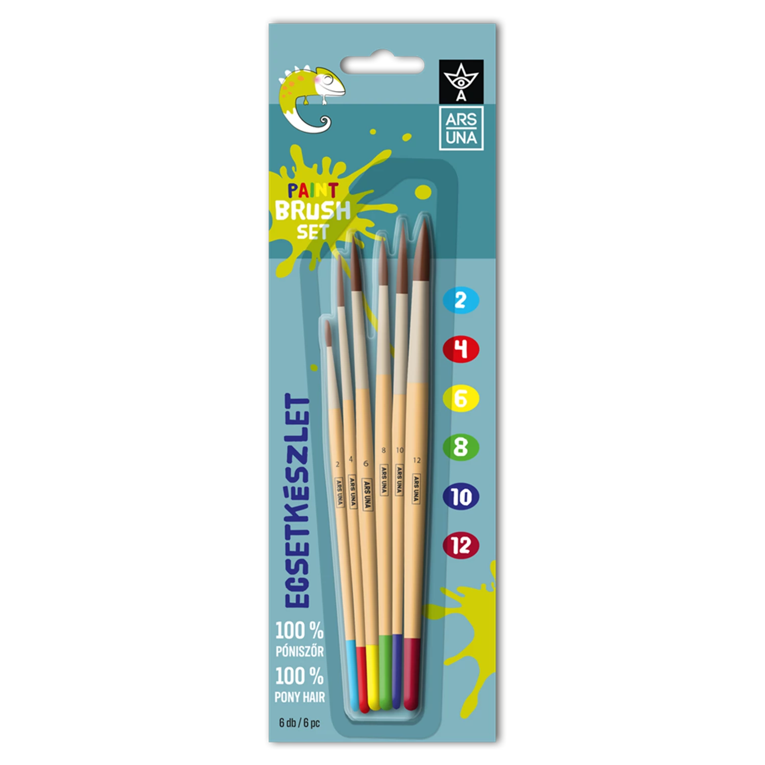 Ecsetkészlet, 2, 4, 6, 8, 10, 12, natúr fanyelű,kerek 6 darabos klt. Ars Una