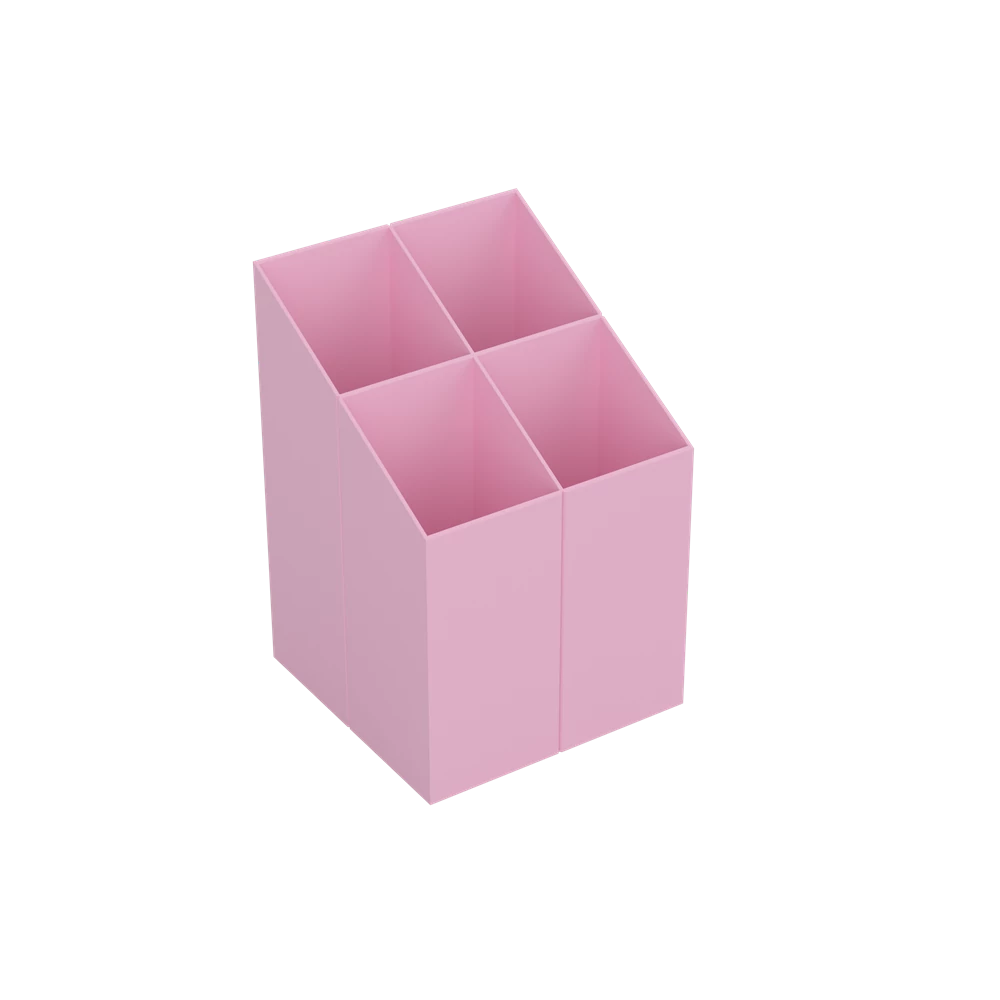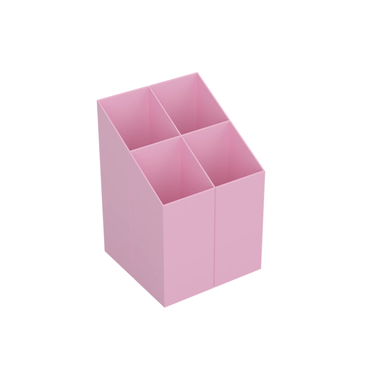 Írószertartó 4 rekeszes négyszögletű műanyag, Ico pasztell rózsaszín