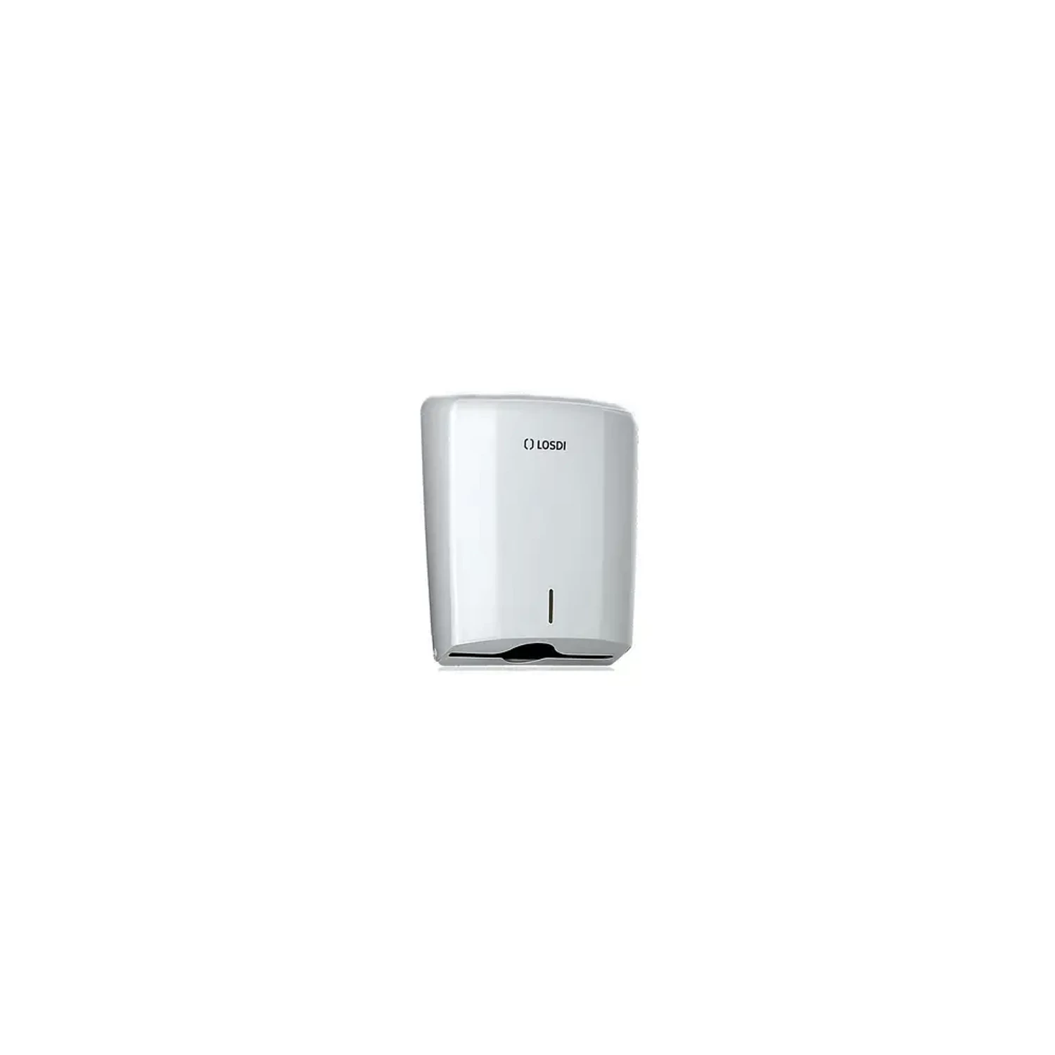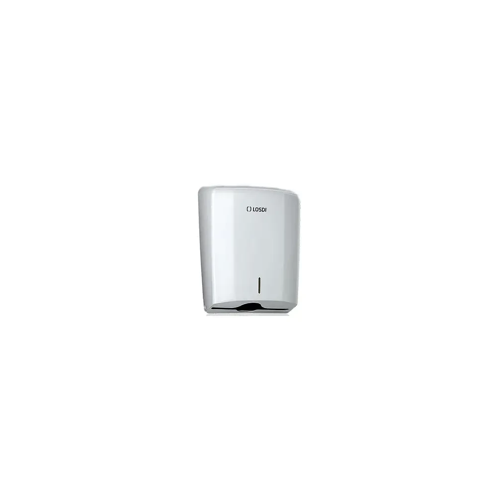 A LOSDI hajtogatott kéztörlő adagoló "C" és "V" hajtogatott kéztörlővel használható. Egyszerű fehér megjelenésével bármilyen mosdóhoz kiválóan illeszthető. Tartós ABS műanyag borítással rendelkezik, így nagyobb forgalmú helyekre is tökéletes választás. V hajtogatott kéztörlővel használható, 600 lapos. Katalóguskód: 43763