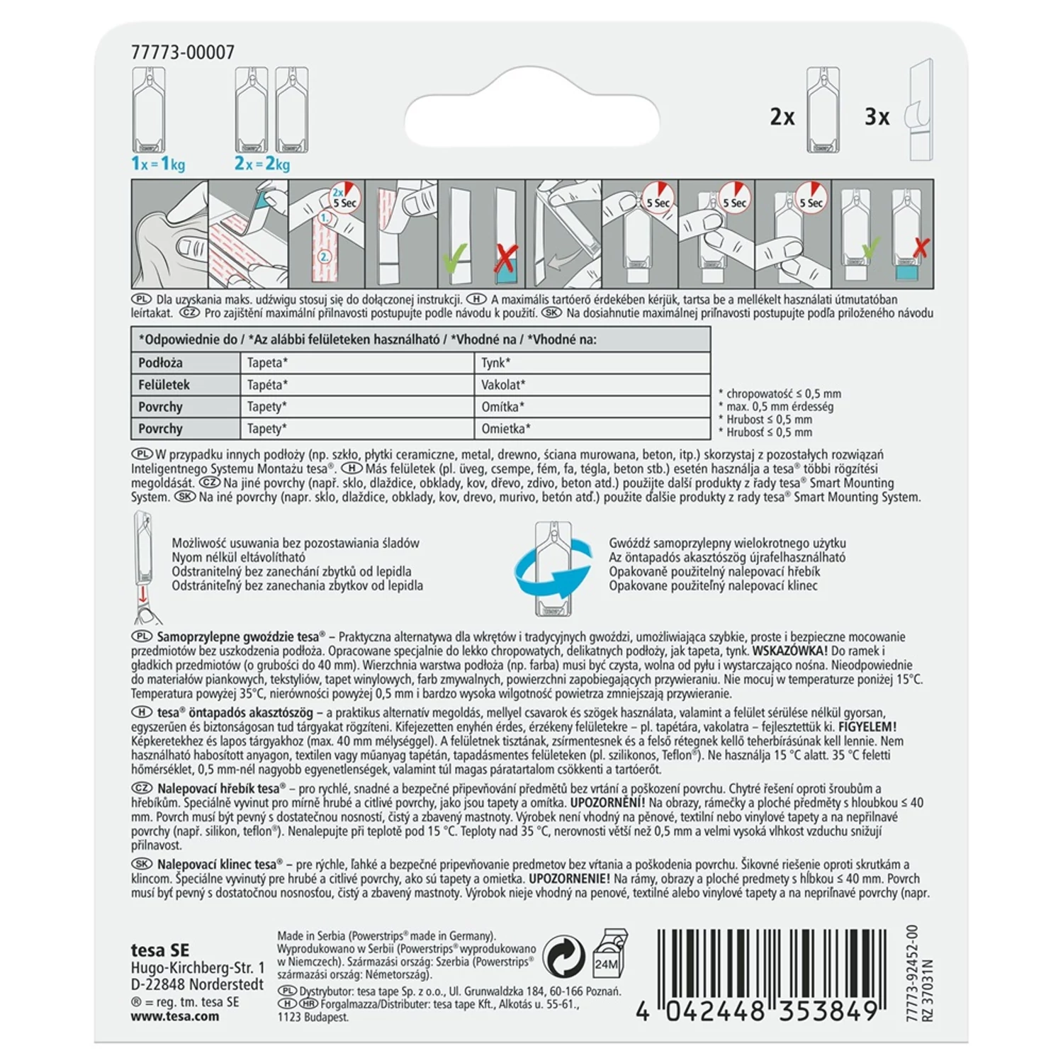 Öntapadós akasztószög tapétára, vakolatra és festett falra, 1 kg súlyig. Kitűnő megoldás képek és dekorációk érzékeny felületekre, például tapétára, vakolatra és festett falra történő felakasztására. Katalóguskód: 47028 Hiteles tájékoztatás: Elkötelezettek vagyunk termékeink biztonságának garantálásáért, nyomon követjük a termékbiztonsággal kapcsolatos valamennyi európai uniós és hazai szabályozást és biztosítjuk termékeink azoknak történő megfelelését. Az EU 2023/988-as számú Általános Termékbiztonsági Rendeletét (GPSR) is alkalmazzuk, így ha a termékeink biztonságát illetően fogyasztóként kérdése, észrevétele van, vagy esetleg balesetről van tudomása, kérjük, írja meg nekünk. GPSR: TESA SE Headquarter Europe Hugo-Kirchberg-Straße 1., 22848 Norderstedt, Germany tesa.Industrieinternetanfragen@tesa.com https://www.tesa.com/en