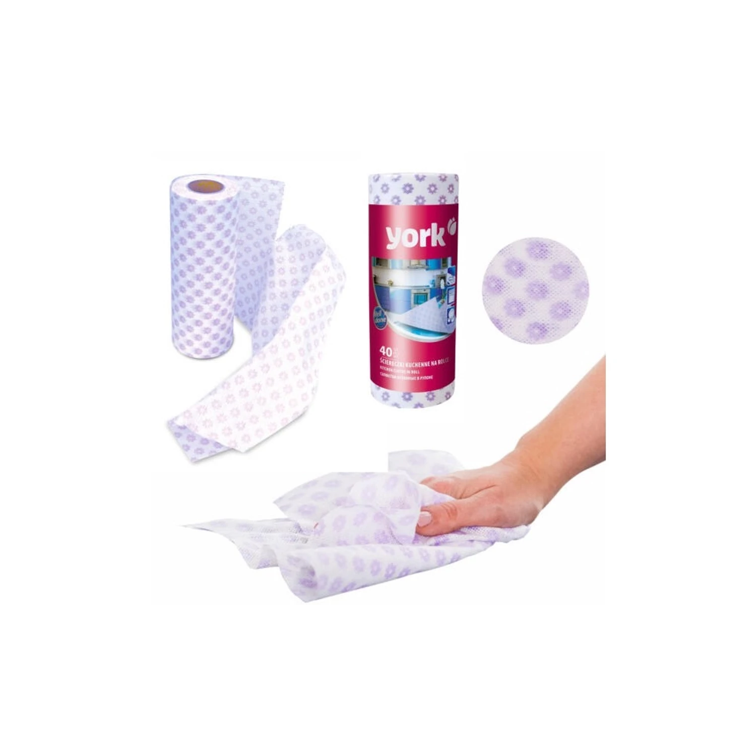 York konyhai törlőkendő tekercsben környezetbarát alternatívát kíván a papírtörlő helyett. A törlőkendők nem karcolják meg a kényes felületeket, ennek köszönhetően biztonságosan tisztíthatjuk a konyhai és fürdőszobai csempét, ablakot, tükröt vagy indukciós főzőlapot. Mosógépben 40° C-on mosható. Kiszerelés: 40 lap / tekercs Katalóguskód: 63152