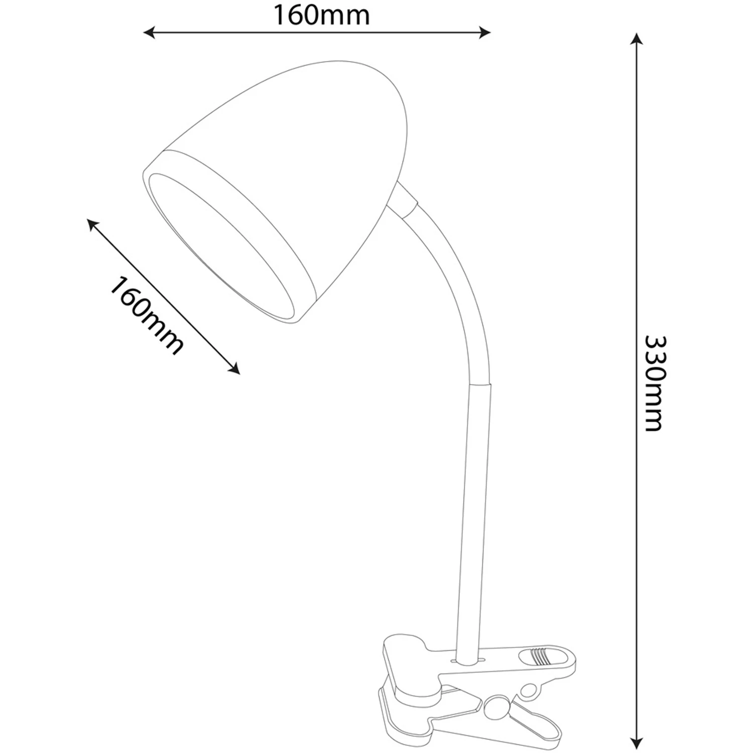 Asztali lámpa, csiptethető, E27, max. 15W, AVIDE, fehér