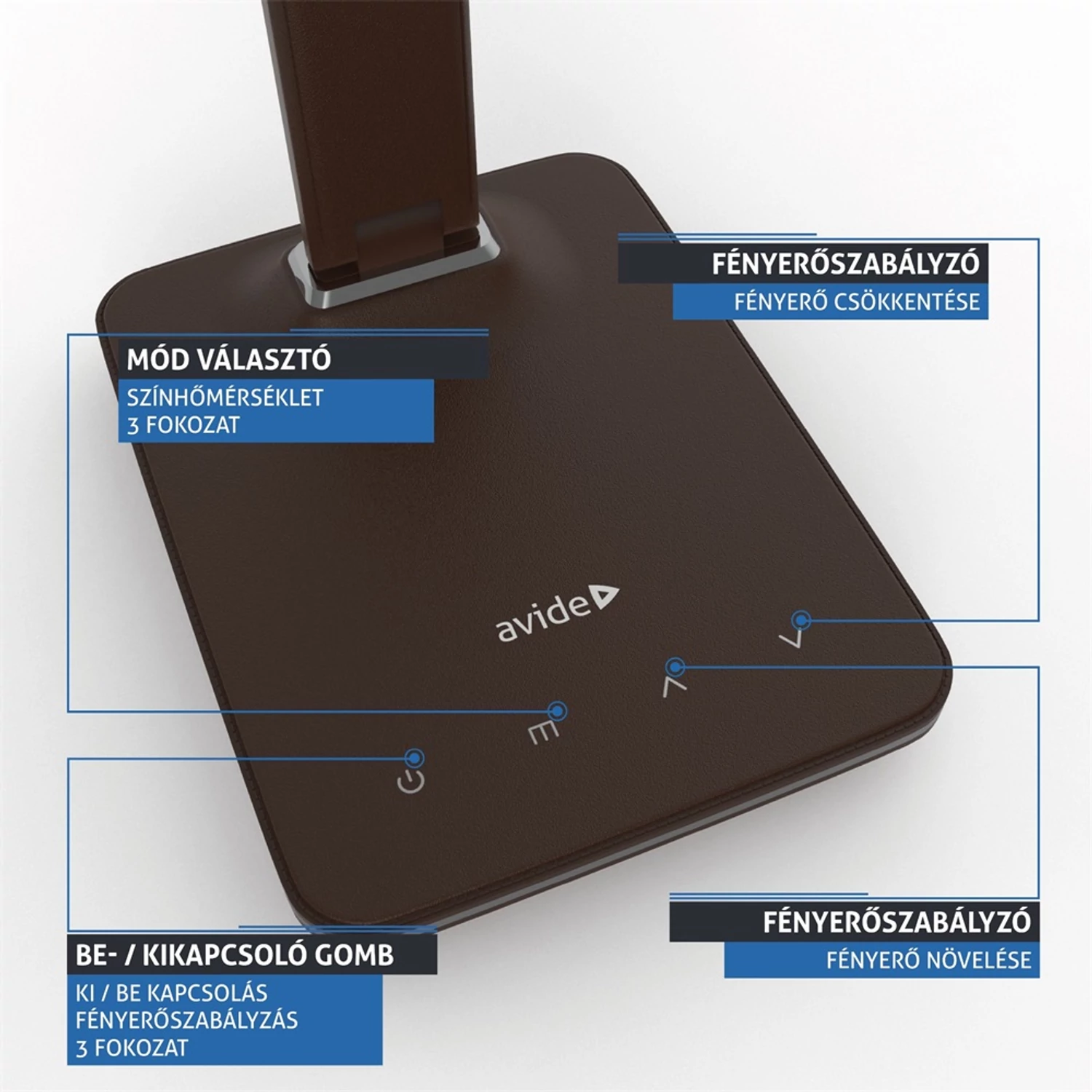 Asztali LED lámpa, Nathan, kijelzős, 6W, 5000K, AVIDE, barna