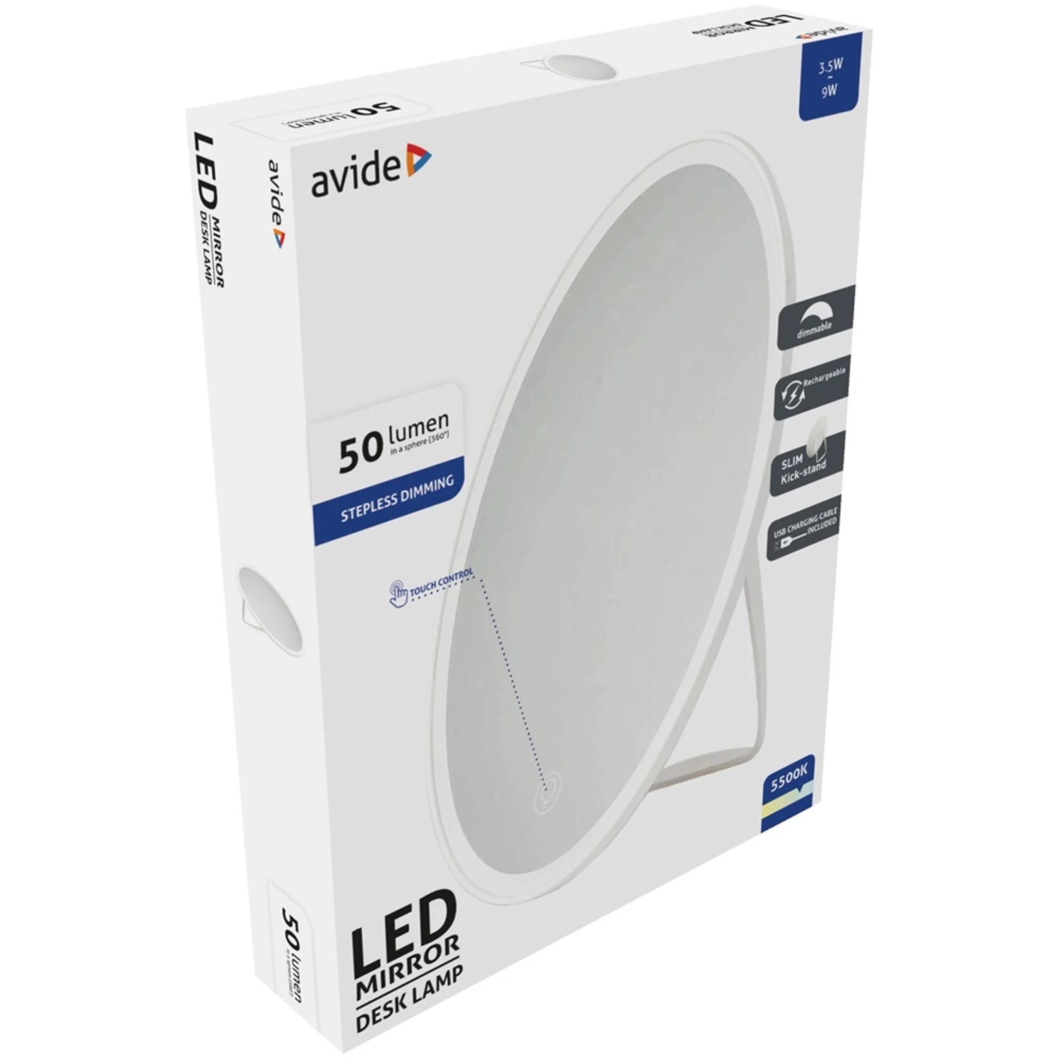 Avide LED Asztali Lámpa Világítós Sminktükör Akkumlátoros Kerek Az Avide LED Asztali Lámpa fehér színű, praktikus és stílusos, akkumulátorral működő, világítós sminktükör. Ez a kerek formájú lámpa tökéletes kiegészítője lehet a sminkelésnek vagy bármilyen más szépészeti tevékenységnek. A beépített LED világításnak köszönhetően tökéletes megvilágítást biztosít, így könnyedén elvégezheted a precíziós munkákat. Az akkumulátoros működés lehetővé teszi, hogy bárhová magaddal vigye a lámpát. Tökéletes választás lehet otthoni használatra vagy akár utazáshoz is. Műszaki adatok Teljesítmény: 3,5 W Fényáram: 50 lm Színhőmérséklet: 5500K (semleges fehér) Világítási szög: 170° Színvisszaadási index: CRI >80 LED típus: SMD2835 LED-ek száma: 34 db Feszültség: 220–240V Kimeneti feszültség: 5V Élettartam: 30 000 óra IP védelem: IP20 elem típus: Li-ion 1200mAh működési idő: 3 óra Anyag és kivitel Anyag: ABS + PC + GLASS Szín: Fehér Méretek Méret: 168*40*238 mm Súly: 295,5 g Garancia: 2 év Hiteles tájékoztatás: Elkötelezettek vagyunk termékeink biztonságának garantálásáért, nyomon követjük a termékbiztonsággal kapcsolatos valamennyi európai uniós és hazai szabályozást és biztosítjuk termékeink azoknak történő megfelelését. Az EU 2023/988-as számú Általános Termékbiztonsági Rendeletét (GPSR) is alkalmazzuk, így ha a termékeink biztonságát illetően fogyasztóként kérdése, észrevétele van, vagy esetleg balesetről van tudomása, kérjük, írja meg nekünk. GPSR: Bramcke Hungary Kft.,4031 Debrecen, Kishatár utca 17.https://bramcke.hu; info@bramcke.hu; +36 52 794 696