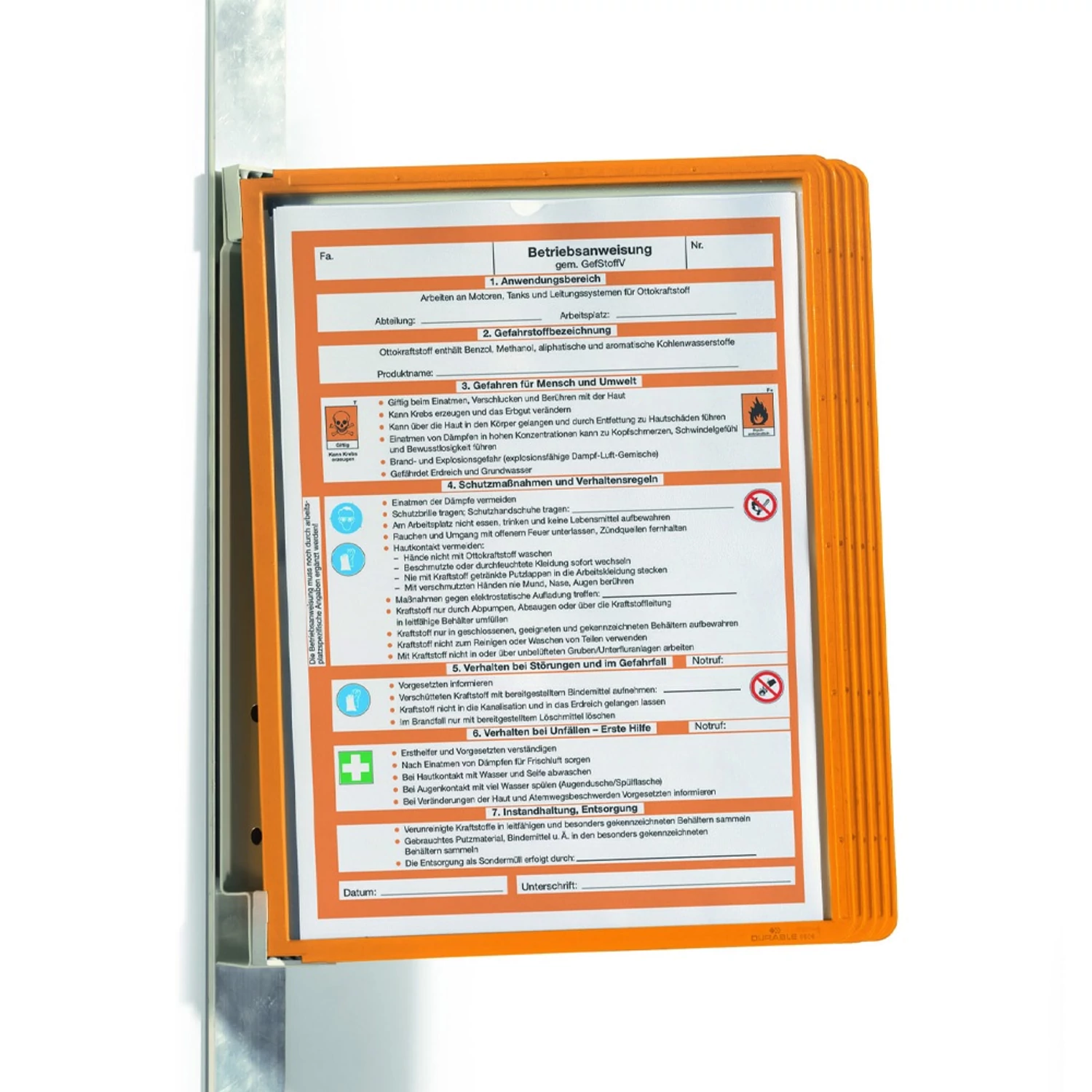 Bemutatótábla tartó, Durable Vario® Magnet Wall 5, narancssárga