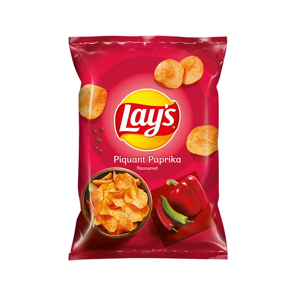 Pikáns, paprikás ízű burgonyachips. Összetvők:burgonya, növényi olajok (kukorica étolaj, napraforgó étolaj, repce étolaj változó arányban), ízesítő [étkezési só, fruktóz, tejfölpor tejből, keményítő, cukor, aromák (tartalmaz tejet, búzát, szóját), ízfokozók (nátrium-glutamát, dinátrium-guanilát, dinátrium-inozinát), fűszerek, étkezési sav (citromsav), színezék (paprikakivonat)]. Hiteles tájékoztatás: Elkötelezettek vagyunk termékeink biztonságának garantálásáért, nyomon követjük a termékbiztonsággal kapcsolatos valamennyi európai uniós és hazai szabályozást és biztosítjuk termékeink azoknak történő megfelelését. Az EU 2023/988-as számú Általános Termékbiztonsági Rendeletét (GPSR) is alkalmazzuk, így ha a termékeink biztonságát illetően fogyasztóként kérdése, észrevétele van, vagy esetleg balesetről van tudomása, kérjük, írja meg nekünk.