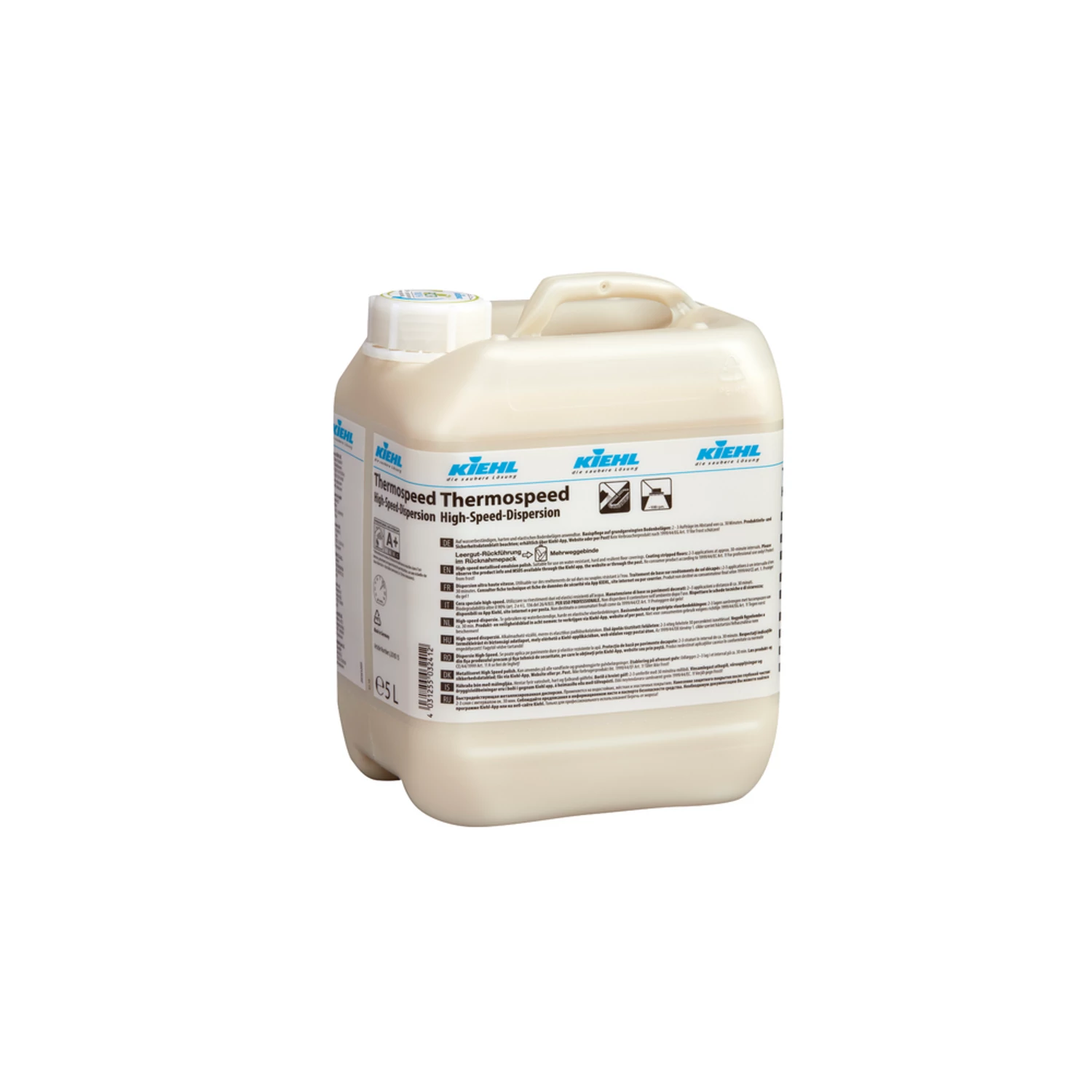 Kiehl Thermospeed high-speed diszperzió fémhálósított műanyag diszperzió, magas szilárdanyag tartalommal és optimális fényhatású nagyon jó filmképző tulajdonsággal. A Thermospeed egy kiváló alapápolószer, különösen strapabíró, szennytaszító, mosásálló és csúszásgátló.