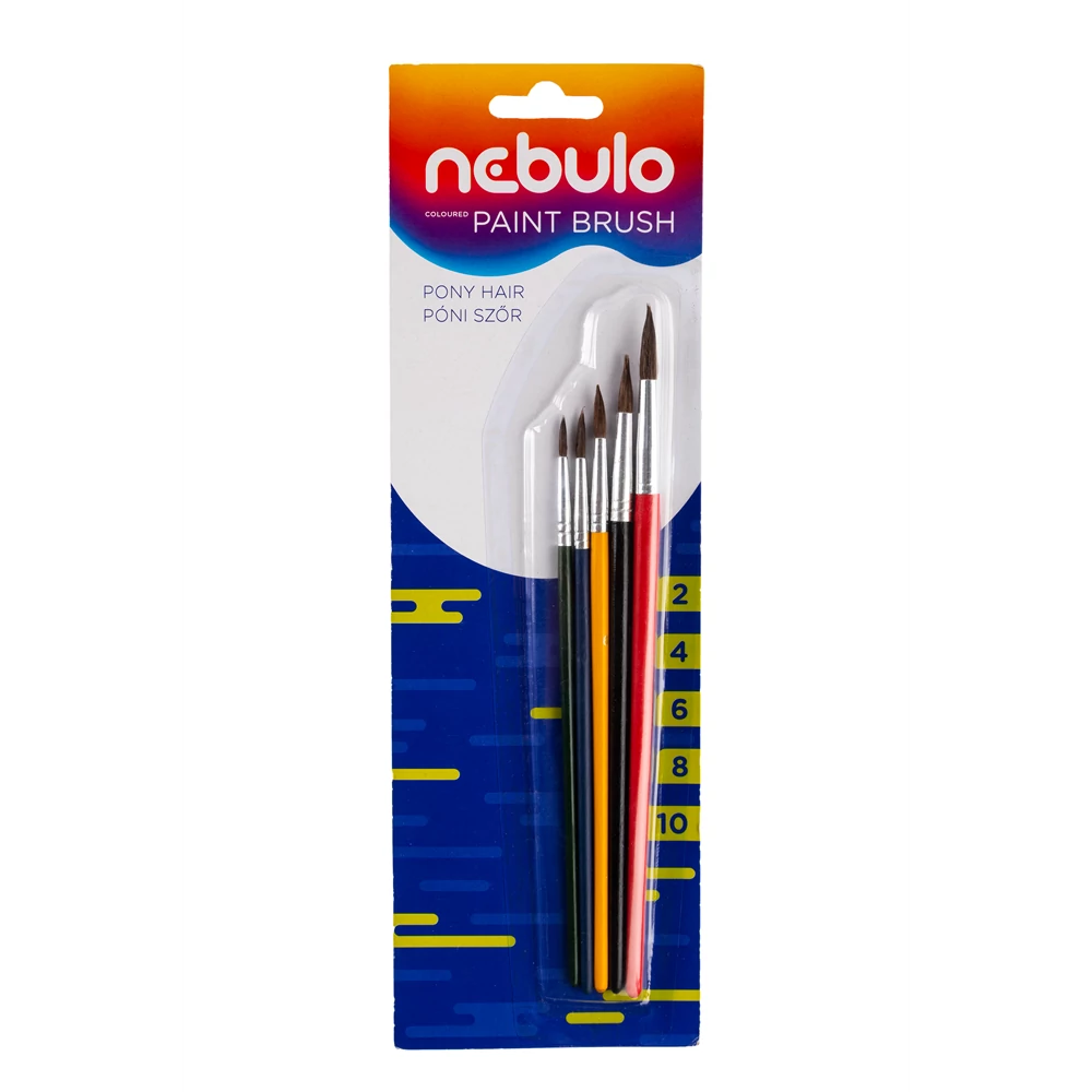 Ecset készlet festett fa nyéllel 5 db/csomag, Nebulo