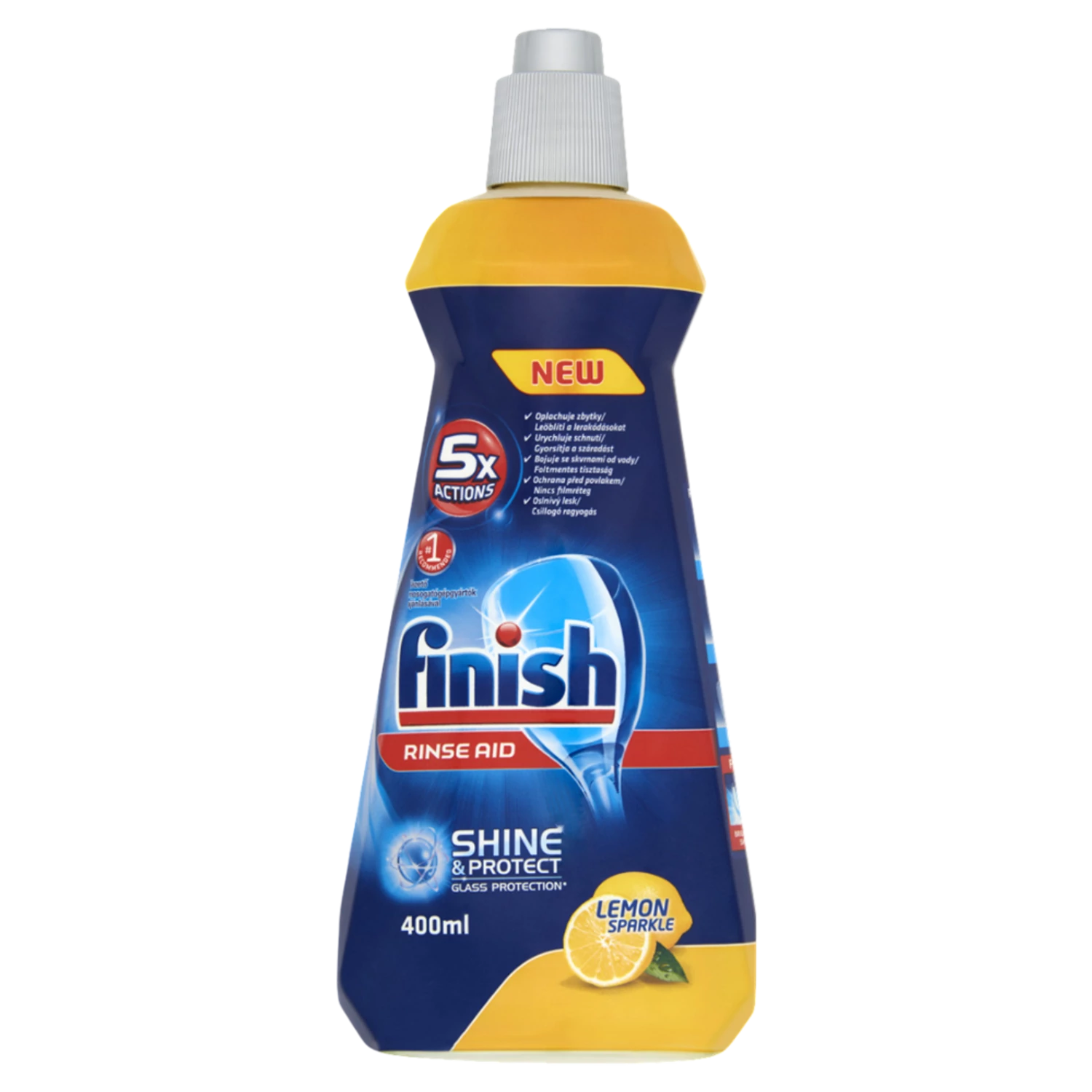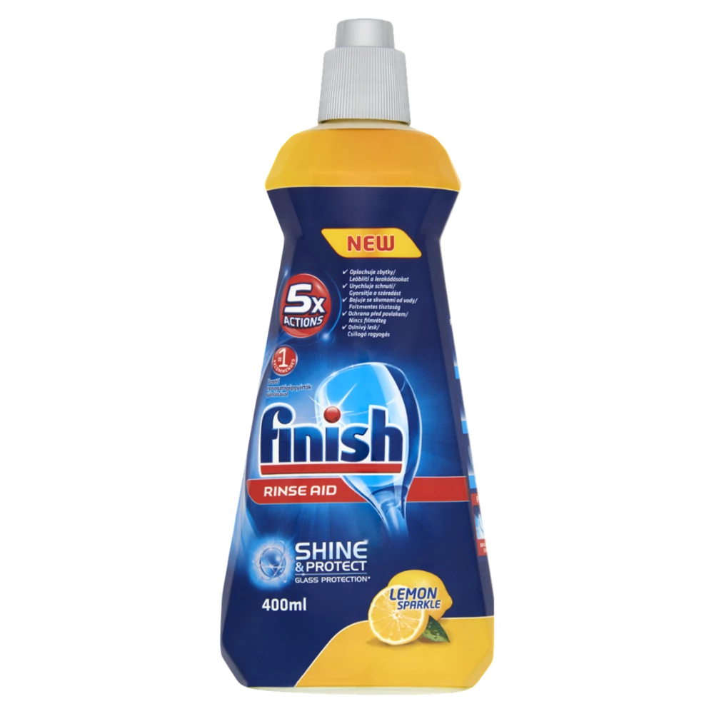 Ez a termék kifejezetten úgy lett kifejlesztve, hogy csökkentse a vízfoltok kialakulását, felgyorsítsa a száradást, és friss, kellemes citromillatot hagyjon maga után. Ha eleged van a matt poharakból, a cseppnyomos evőeszközökből és az utólagos törölgetésből, akkor a Finish gépi öblítő ideális választás lesz számodra. Az eredmény függhet a mosogatógép típusától, a választott programtól, a víz keménységétől és az adagolási beállításoktól. Az öblítőszer a mosogatás kiegészítője: a legjobb hatás érdekében érdemes a gép só- és öblítőszer-szintjét, illetve a szórókarok tisztaságát is rendben tartani.