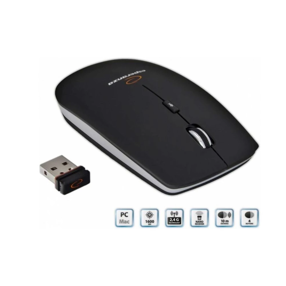 Egyszeru üzembe helyezés és használat. Kényelmes és hordozható. Kisméretu, formatervezett kivitel. Ez a vezeték nélküli hordozható egér elég kicsi, hogy bárhová magaddal vihesd és használhasd, – otthon, munkahelyen vagy akár útközben is. A vezeték nélküli vevokészülék az egér belsejében elrejtheto egy speciális rekeszben. Kompatibilis: Win 98/2000/ME/N-T/VISTA/7/8, Unix, MAC OS 8.6 vagy magasabb Tulajdonságok: 2,4 GHz-es vezeték nélküli kapcsolat Megbízható vezeték nélküli kapcsolat akár 10 méter távolságig Optikai szenzor 800/1200/1600 DPI. Egér típusa: Vezeték nélküli Csatlakozó típusa: Wireless 2,4 GHz Gombok száma: 3gomb+1görgo (csendes) Táp: 2x AAA elem (nem tartozék) Interfész: USB Szenzor: Optikai 1 év garanciaKatalóguskód: 24085 Hiteles tájékoztatás: Elkötelezettek vagyunk termékeink biztonságának garantálásáért, nyomon követjük a termékbiztonsággal kapcsolatos valamennyi európai uniós és hazai szabályozást és biztosítjuk termékeink azoknak történő megfelelését. Az EU 2023/988-as számú Általános Termékbiztonsági Rendeletét (GPSR) is alkalmazzuk, így ha a termékeink biztonságát illetően fogyasztóként kérdése, észrevétele van, vagy esetleg balesetről van tudomása, kérjük, írja meg nekünk. GPSR: Esperanza Sp. J. Poterek PL-05-850 Ożarów Mazowiecki, ul.Poznańska 129/133 info@esperanza.pl