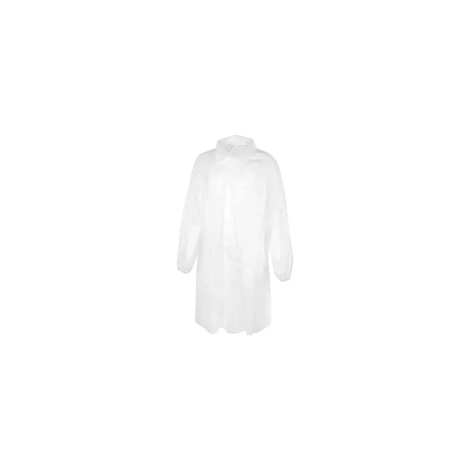 A köpeny nem szőtt polipropilén (PP) anyagú, 42 g/m² súllyal. A “nem szőtt” (non-woven) anyagokat gyakran használják eldobható védőruházatoknál, mert könnyűek, egyszerűen kezelhetők, és tipikusan egyszeri használatra tervezik őket.