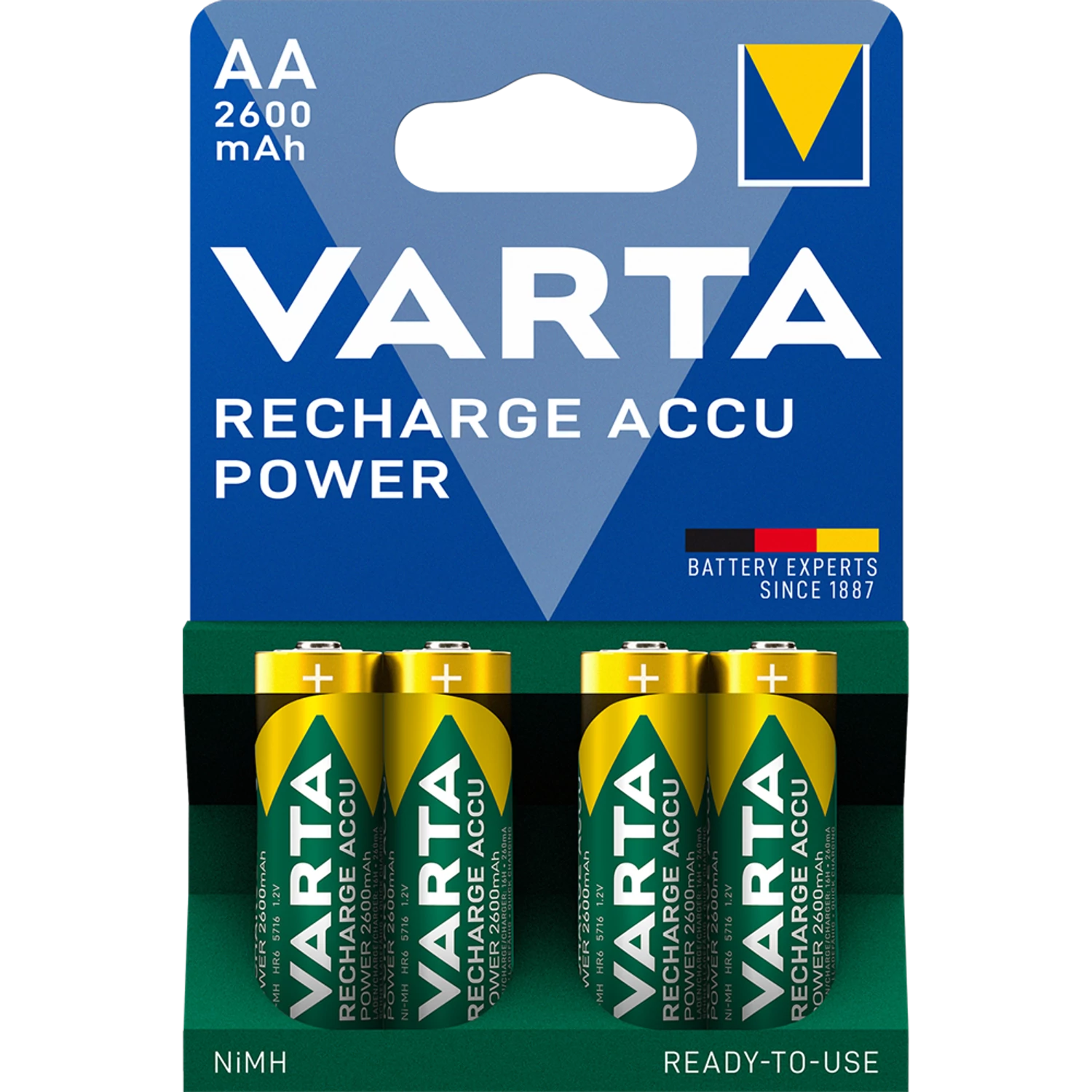 A „Ready-to-Use” technológia miatt a Varta akkumulátorok gyárilag előtöltött állapotban kerülnek a csomagba. Ez azt jelenti, hogy nem kell először órákon át a töltőben tartanod őket: kicsomagolás után rögtön behelyezheted őket a távirányítóba, fényképezőgépbe vagy bármilyen más készülékbe.