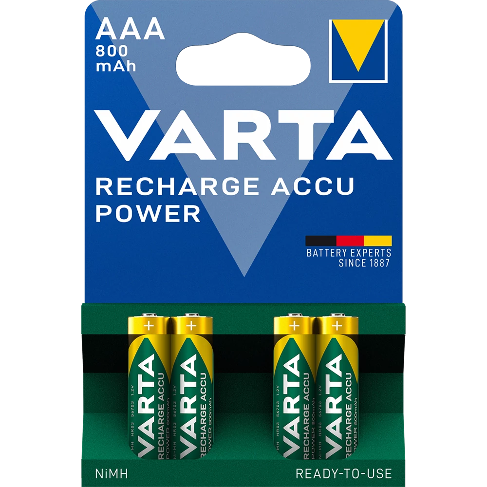 A Varta AAA 800 mAh egy tölthető akkumulátor (akku), ami kompatibilis a legtöbb AAA méretet igénylő készülékkel. Az, hogy tölthető, különösen előnyös olyan eszközöknél, amik sűrűn eszik az energiát, vagy ahol gyakori a csere.