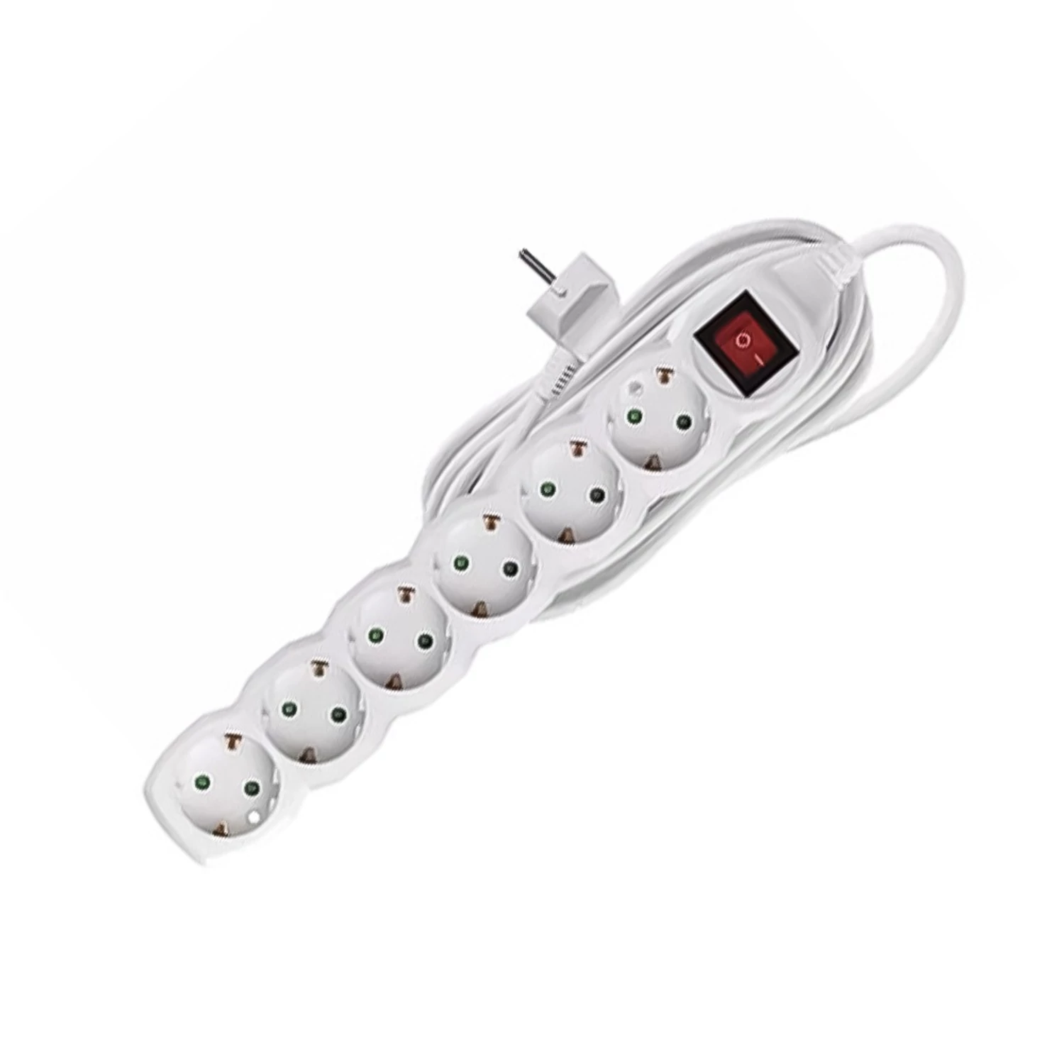 Beltéri hosszabbító kapcsolóval, elosztó hat csatlakozó aljzattal 1,5m hosszúkábellel. Kábel: H05VV-F 3G 1,0mm2 Fehér 6-os elosztó Katalóguskód: 9267
