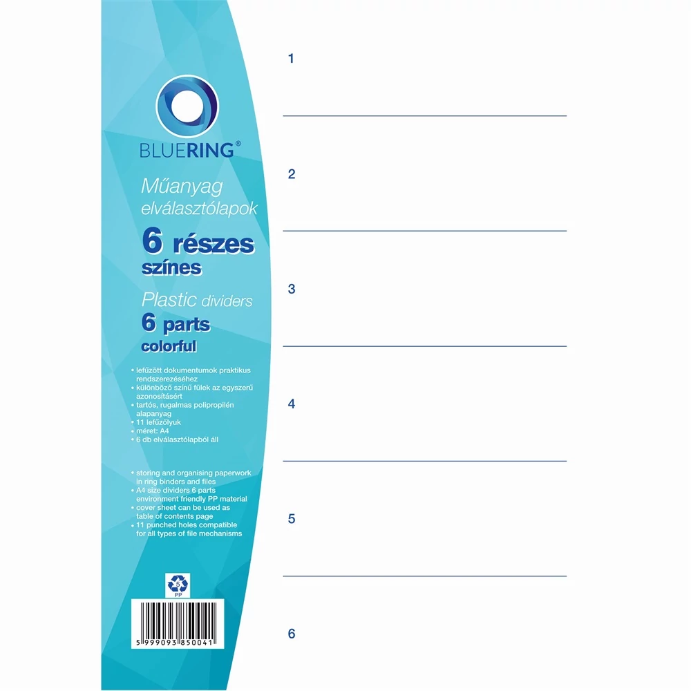 Elválasztólap, színes műanyag 6 részes Bluering®
