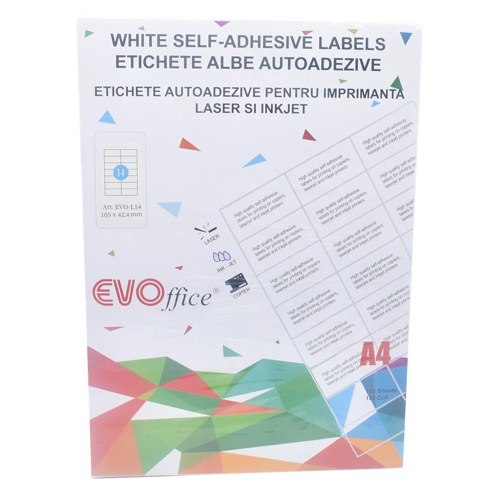 Etikett címke, 105x42,4mm, 100 lap, 14 címke/lap EVO
