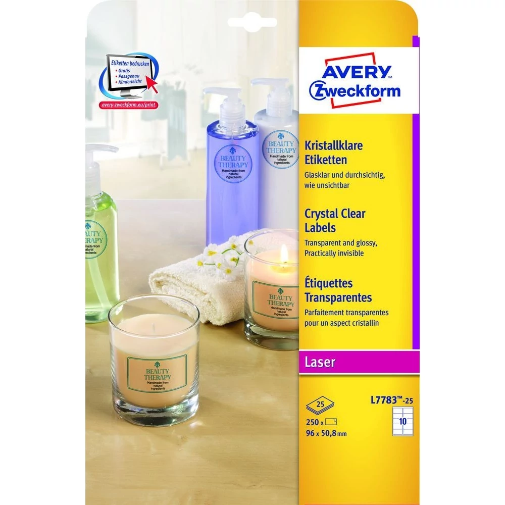 Etikett címke, 96 x50,8mm,víztiszta, 10 címke/ív, 25 ív/doboz, Avery átlátszó