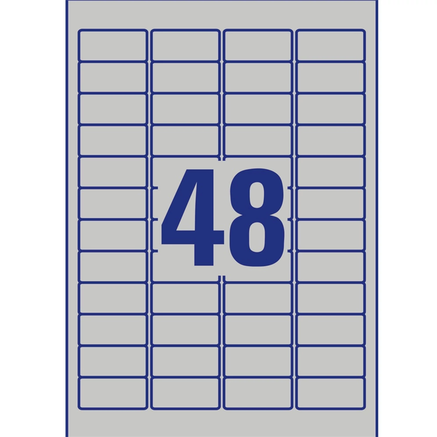 Etikett címke, 45,7 x21,2mm, ipari poliészter, 48 címke/ív, 20 ív/doboz, Avery ezüst