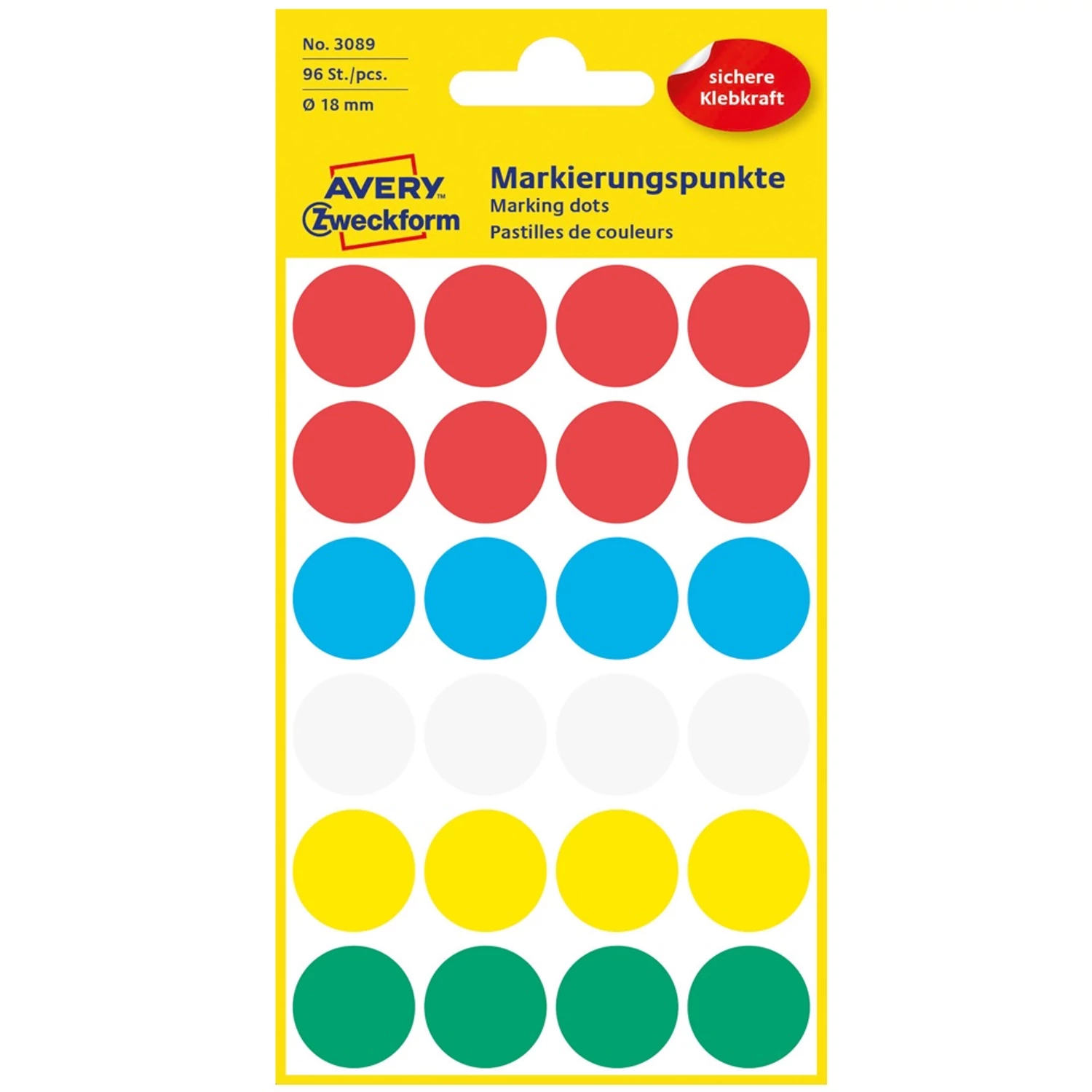 Etikett címke, o18mm, jelölésre, 5 klf. szín 24 címke/ív, 4 ív/doboz, Avery vegyes