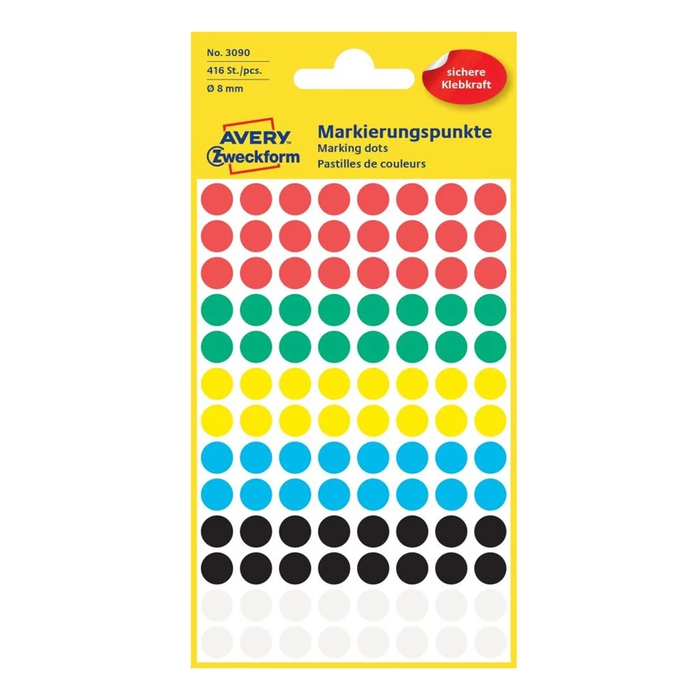Etikett címke, o8mm, jelölésre, 6 klf. szín 104 címke/ív, 4 ív/doboz, Avery vegyes