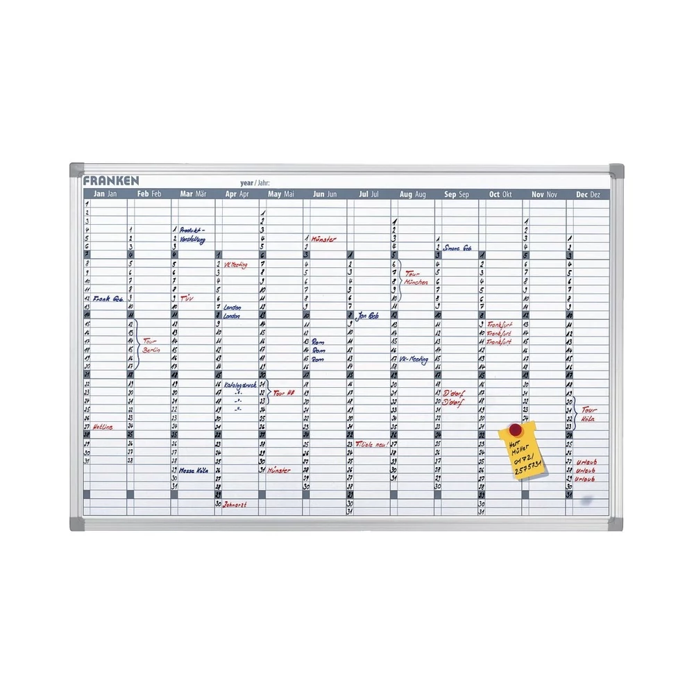 A tábla vastag kerete és kültéri-szinten stabil felülete biztosítja, hogy évekig használható maradjon. Ha irodában vagy oktatási környezetben használod, eleve nagy előny, hogy egyetlen eszköz átláthatóan mutatja az éves tervezést – például céges kampányok, szabadságok, projekt határidők, ünnepnapok.