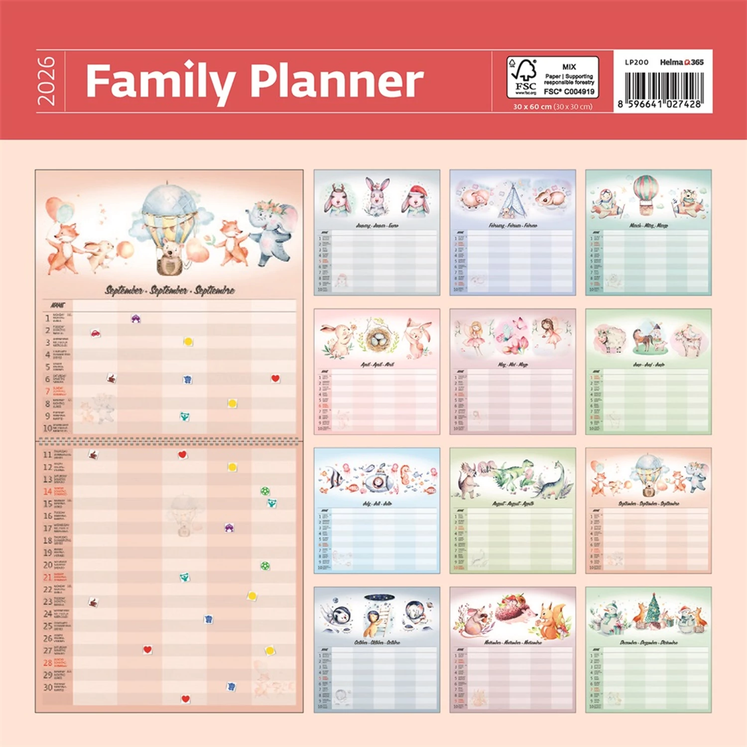 Falinaptár képes 300 x 300 mm, fehér lapokkal Family Planner Dayliner 2026.