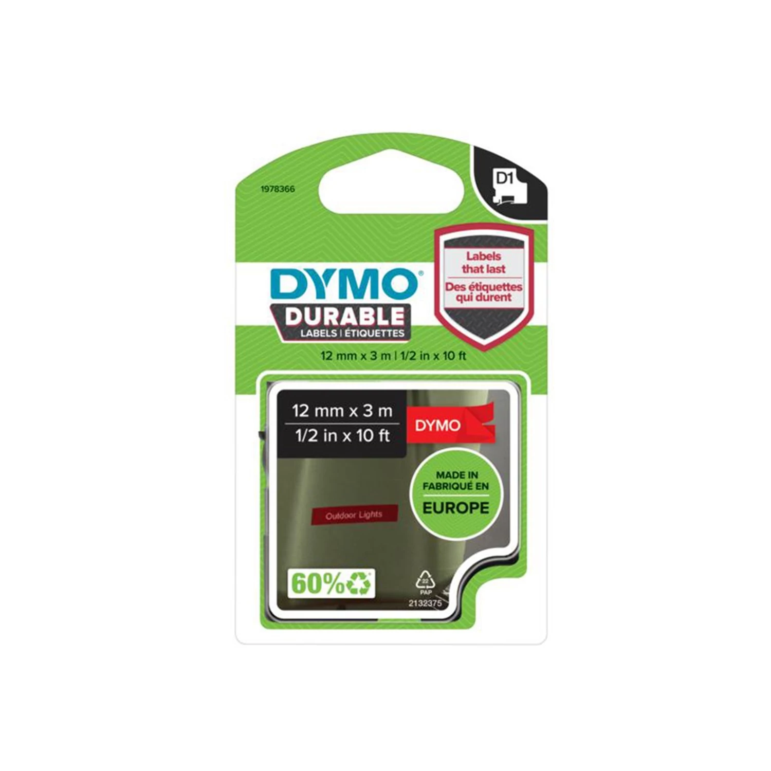 Feliratozógép szalag tartós Dymo D1 1978366 12mmx3m ORIGINAL fehér/piros
