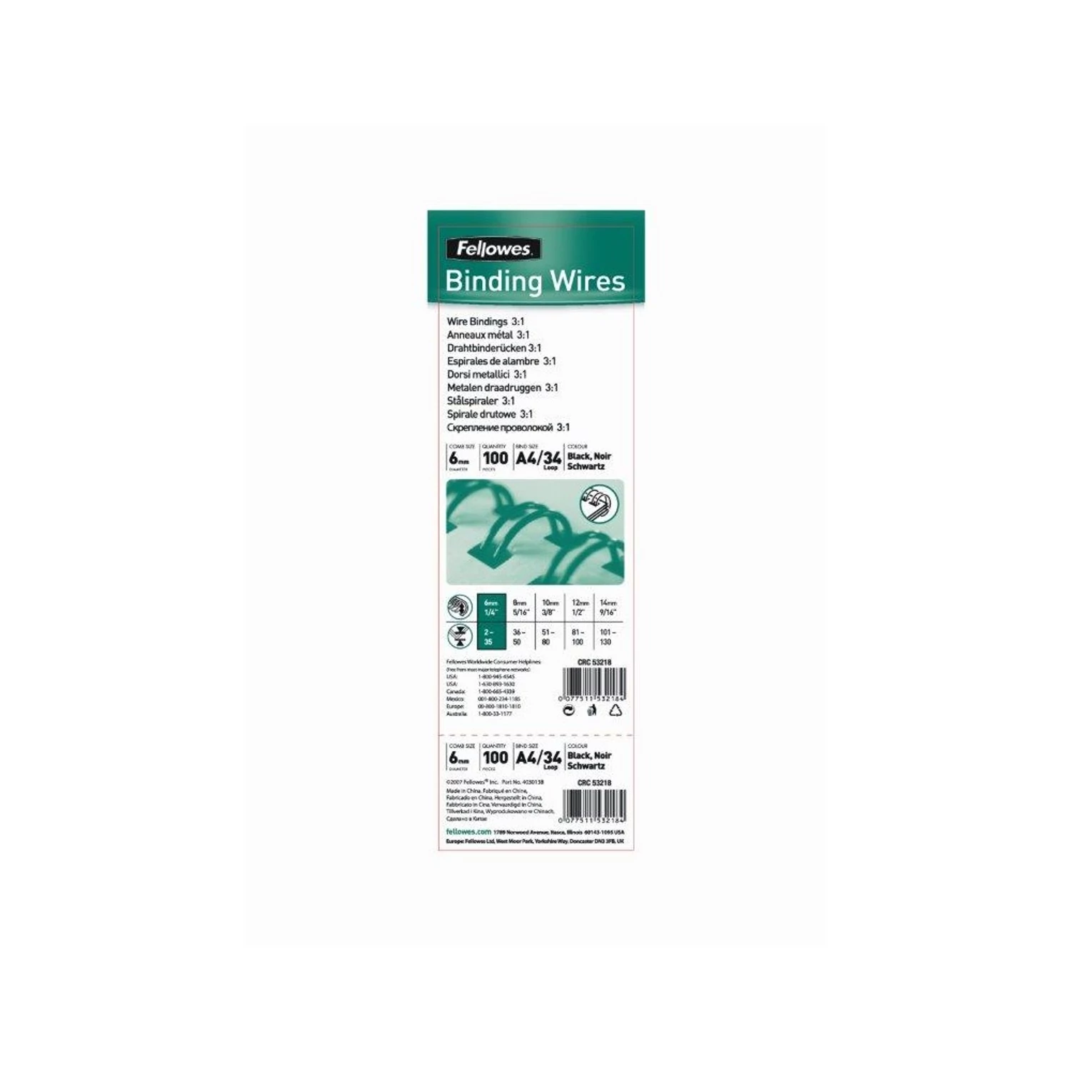 Fém spirál 3:1, 6mm, 21-35lap, Fellowes® 100 db/doboz, fekete