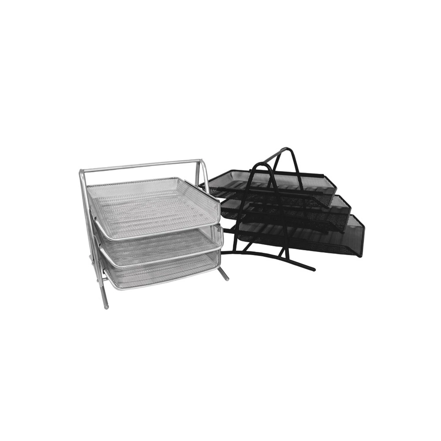 Fémhálós irattálca 3 szintes, háromrészes, Fornax ezüst