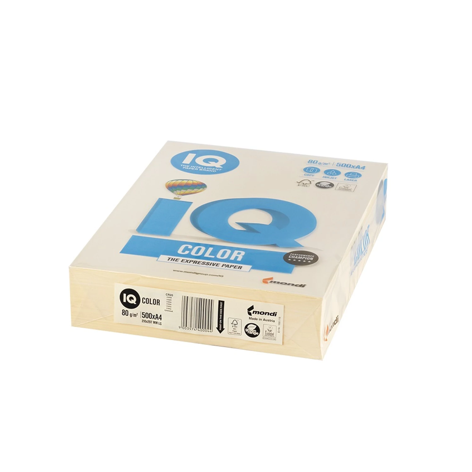 Másolópapír, színes, A4, 80g. IQ CR20 500ív/csomag, pasztell krém