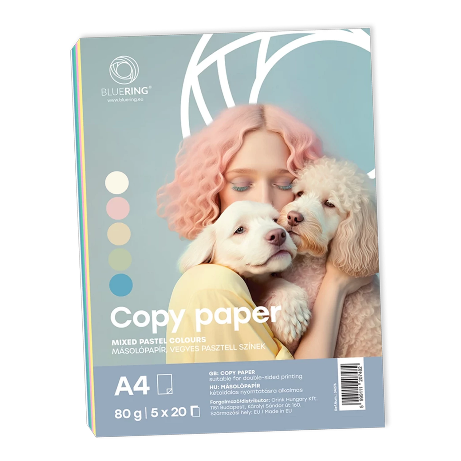 A Bluering® pasztell színes A4 másolópapír ideális társ minden irodában, iskolában vagy otthoni felhasználásban. Ötvözi a megbízható minőséget a szemet gyönyörködtető színekkel, miközben könnyen használható minden hagyományos nyomtatóban és fénymásolóban.