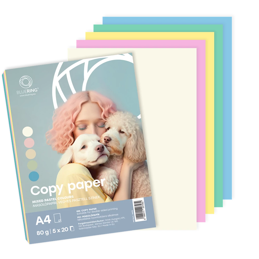 Másolópapír, színes, vegyes színek A4, 80 g Bluering® 5x20 ív/csomag, pasztell mix