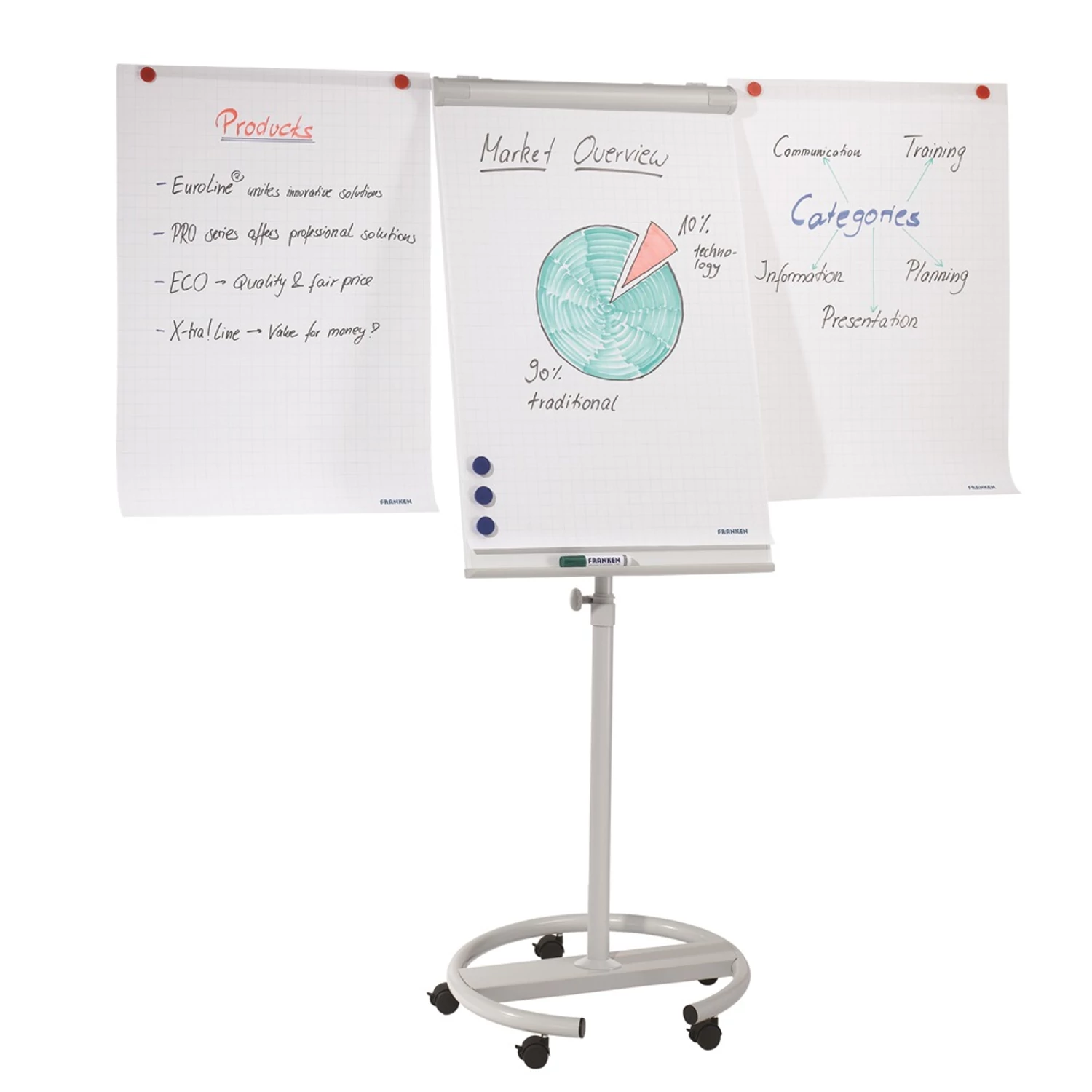 Flipchart tábla mobil 68x105cm, mágneses, 2 db segédkarral, 5 görgős Premium line F2400/N Franken