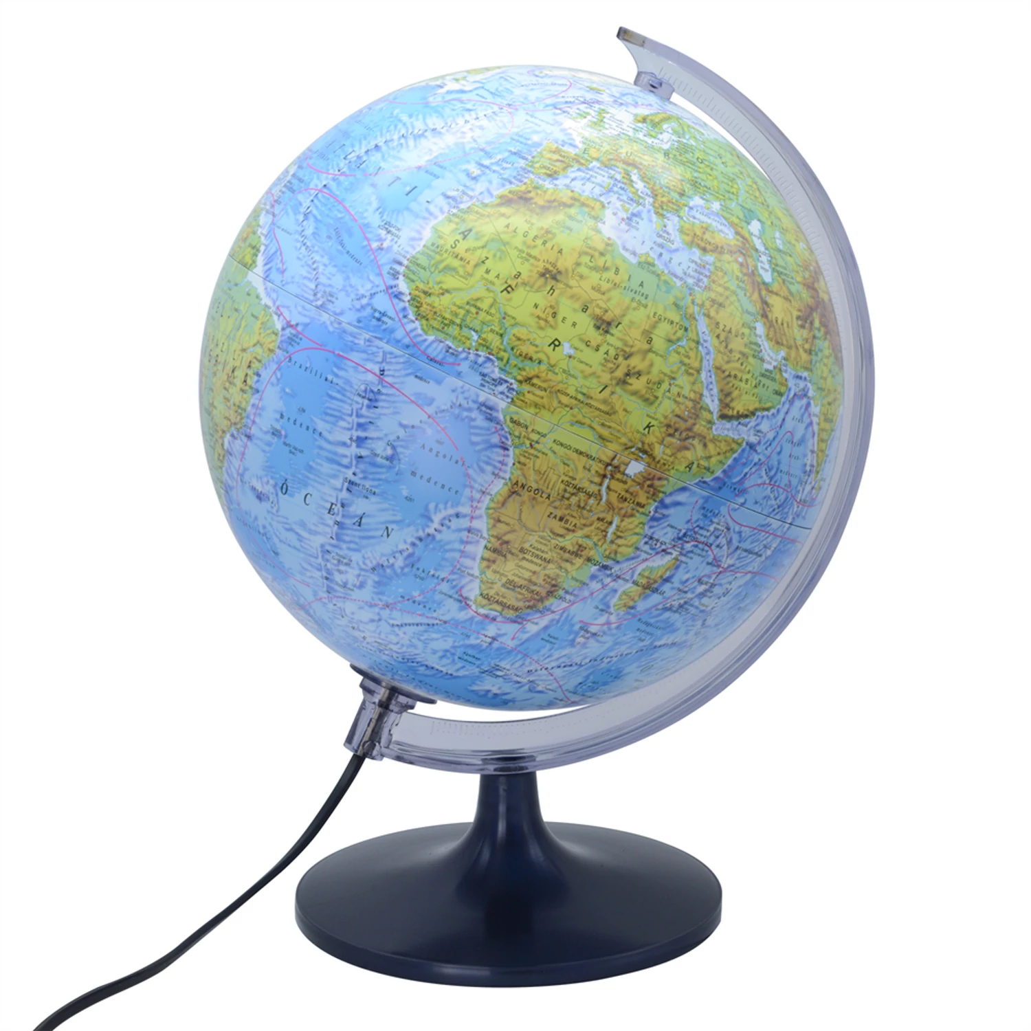 Földgömb 25 cm-es hegy-vízrajzi megvilágított