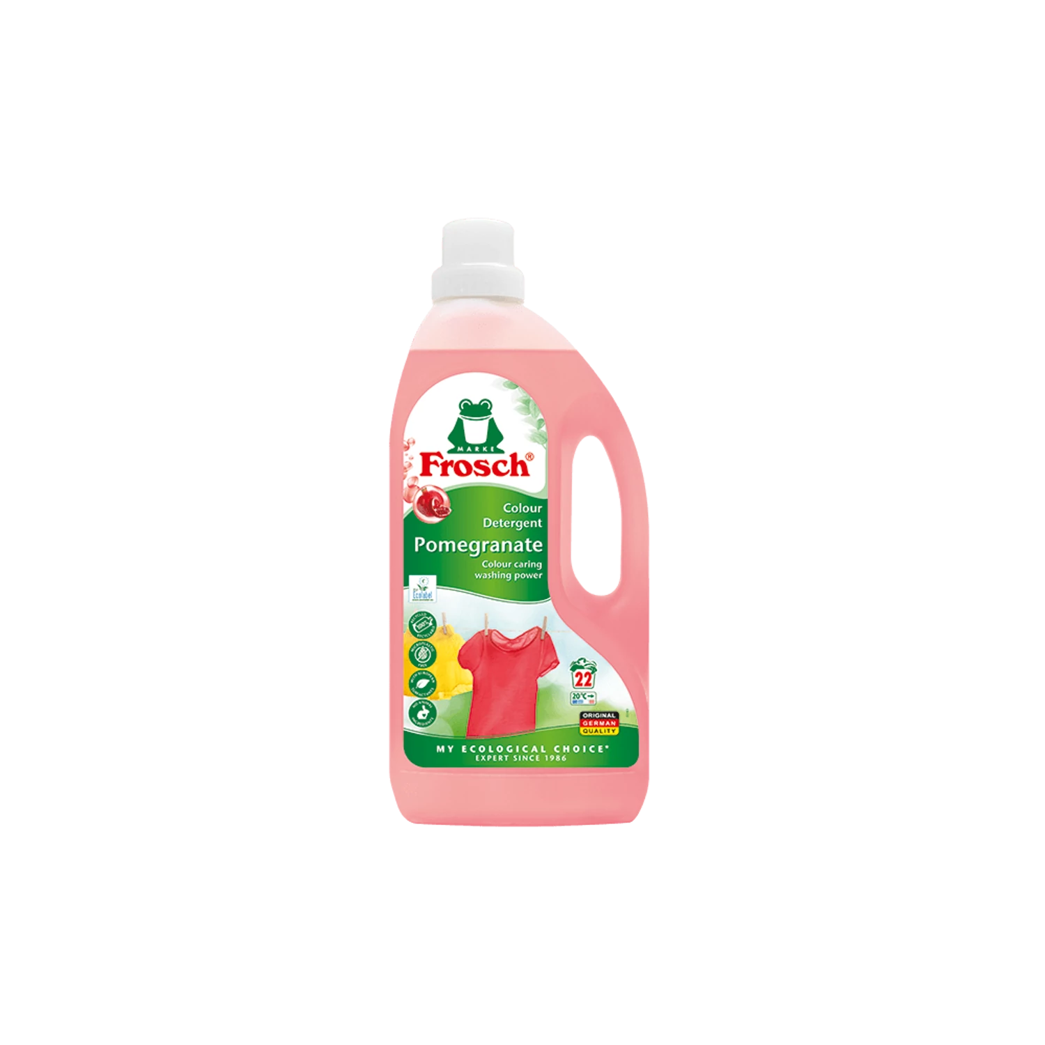Környezetbarát Folyékony mosószer 1,5 liter Frosch Gránátalma, színes és világos ruhákhoz. Hatékony tisztítás 30°C-tól, kímélő összetétellel. 1500 ml-es kiszerelés, kb. 22 mosáshoz, könnyen adagolható flakonban. Alkalmazása: Szortírozza a mosnivalót (pl. szín, szennyezettségi fok, szál típusa szerint), és vegye figyelembe a textíliák kezelési útmutatóját. GHS piktogram Figyelmeztetés: Veszély Figyelmeztető mondatok: H319: Súlyos szemirritációt okoz. Kiszerelés: 5 flakon / karton 51 karton / raklap Szavatossági idő: 24 hónap Folyékony mosószer 1,5 liter Frosch Gránátalma alkalmazásakor ügyeljen a biztonságra! Használat előtt mindig olvassa el a címkét és a használati útmutatót! Katalóguskód: 67438 Hiteles tájékoztatás: Elkötelezettek vagyunk termékeink biztonságának garantálásáért, nyomon követjük a termékbiztonsággal kapcsolatos valamennyi európai uniós és hazai szabályozást és biztosítjuk termékeink azoknak történő megfelelését. Az EU 2023/988-as számú Általános Termékbiztonsági Rendeletét (GPSR) is alkalmazzuk, így ha a termékeink biztonságát illetően fogyasztóként kérdése, észrevétele van, vagy esetleg balesetről van tudomása, kérjük, írja meg nekünk.