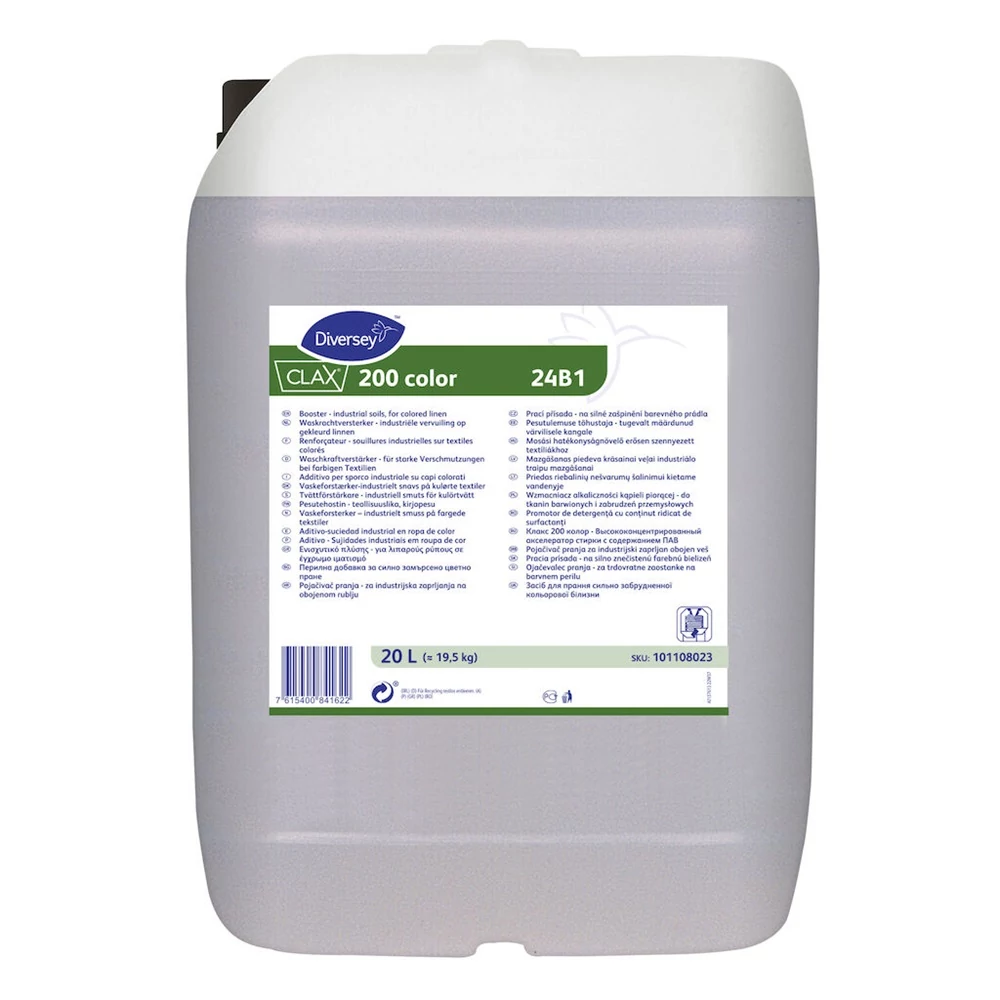 A Clax 200 color egyedi formulájának köszönhetően rendkívül hatékony minden mosási eljáráshoz. A mosási hatékonyság növeléséhez alkalmazható, különösen hatékony zsíros és olajos szennyeződésekkel szemben. Felületaktív anyag tartalmának köszönhetően miután eltávolította a zsíros szennyeződéseket a textíliákról, feloldja azokat, így megelőzi a visszaszennyezést. A Clax 200 color általában lúgos adalékanyagokkal és/vagy mosószerekkel együtt használandó. Javítja a zsíros szennyeződések eltávolításának hatékonyságát, így erősen szennyezett textíliákon, pl. pamut vagy műszálas munkaruházaton és terítőkön különösen jól használható. A Clax 200 color előkezelő szerként is használható a zsíros foltok eltávolítására. Mivel a termék nem tartalmaz optikai fehérítő anyagot, így alkalmas kényes és színes (pasztellszínű) ruhák előkezelésére is.