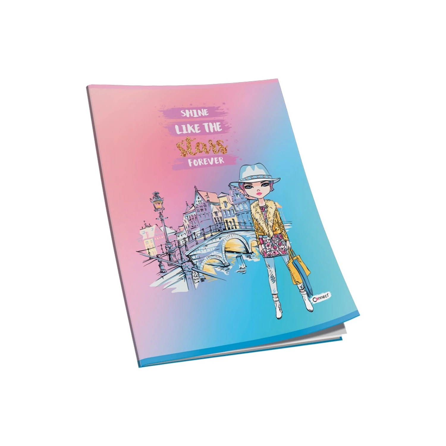 A glitteres Connect borító egyértelműen megkülönbözteti ezt a füzetet a hagyományos iskolai daraboktól. A csillogó felület: