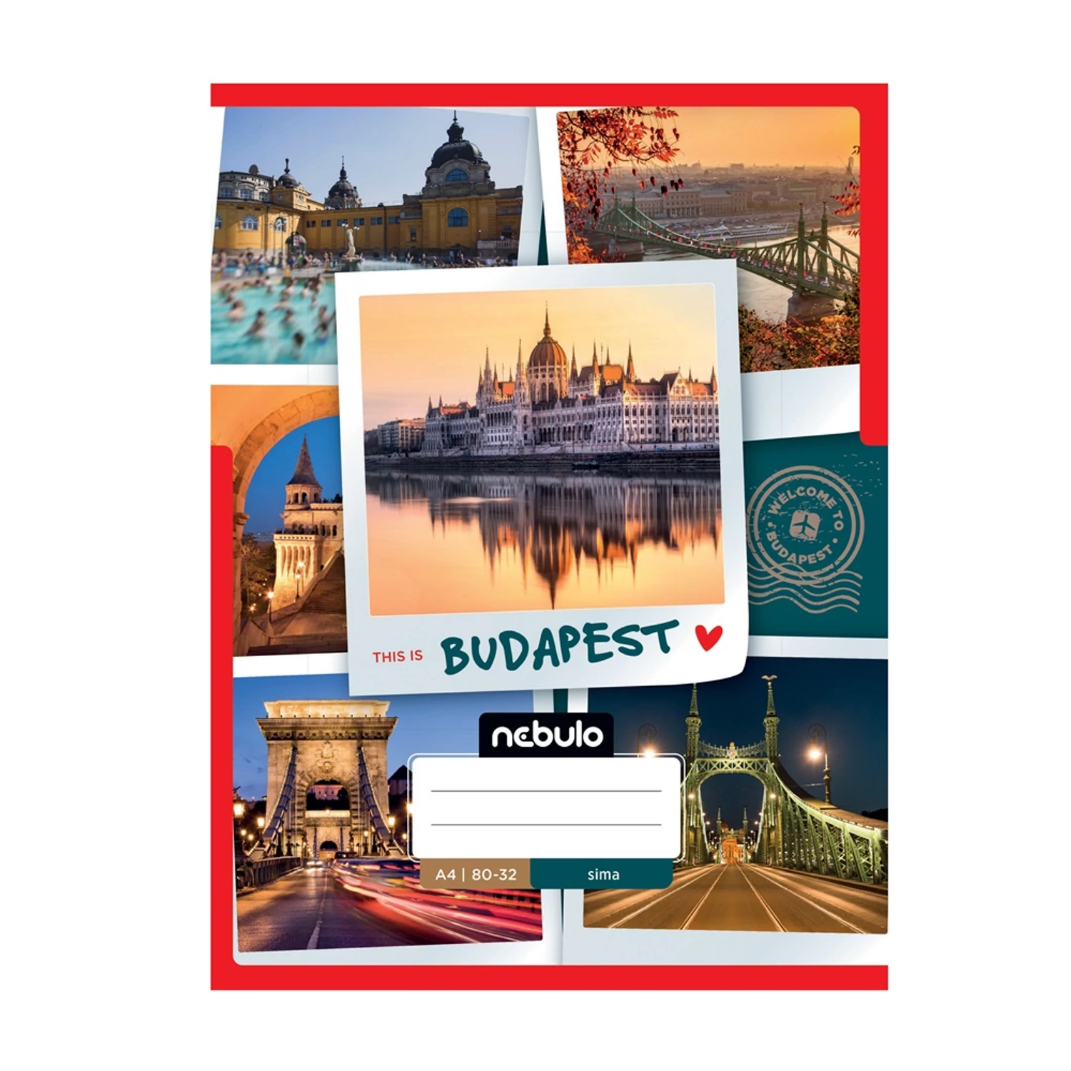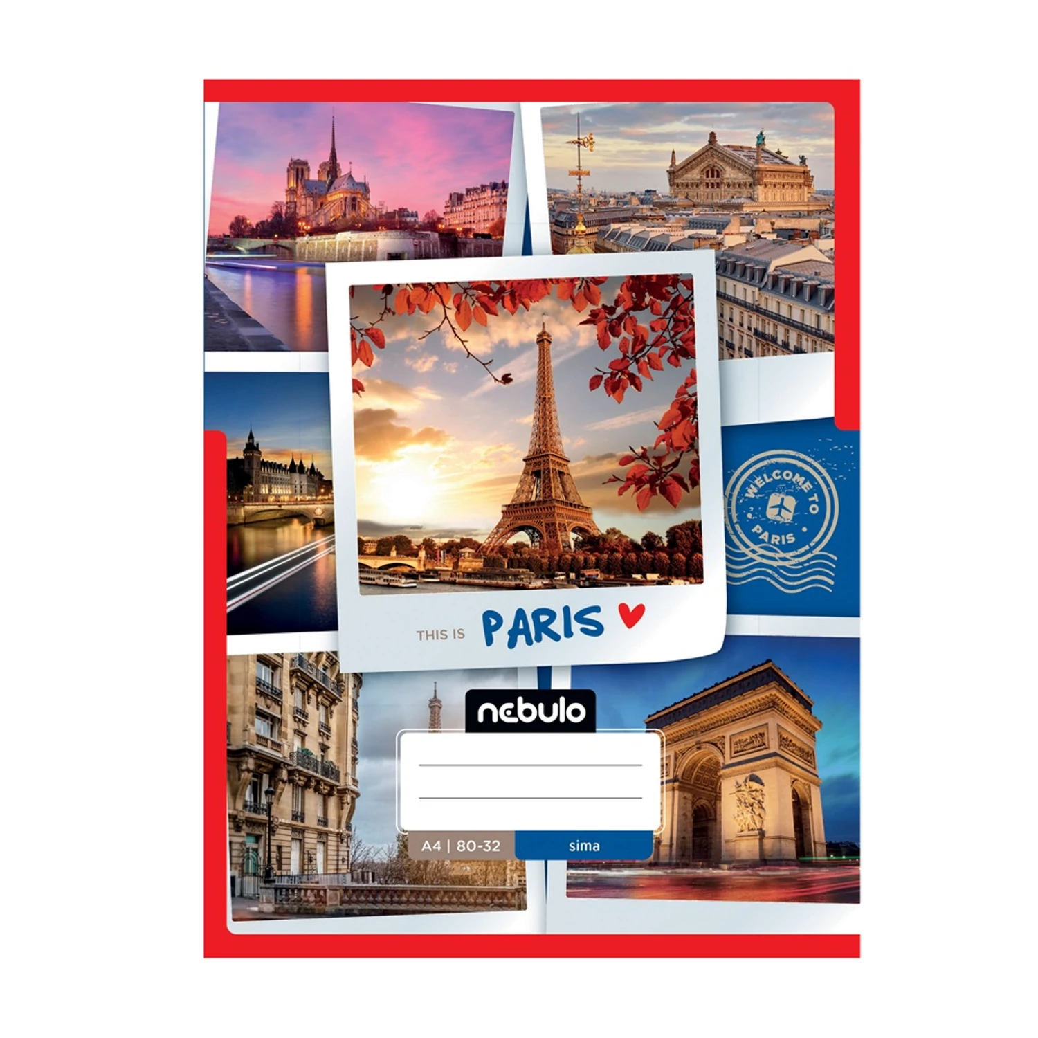 Füzet, A4, sima, 80-32, ország-város minták, 12 db/csomag Nebulo