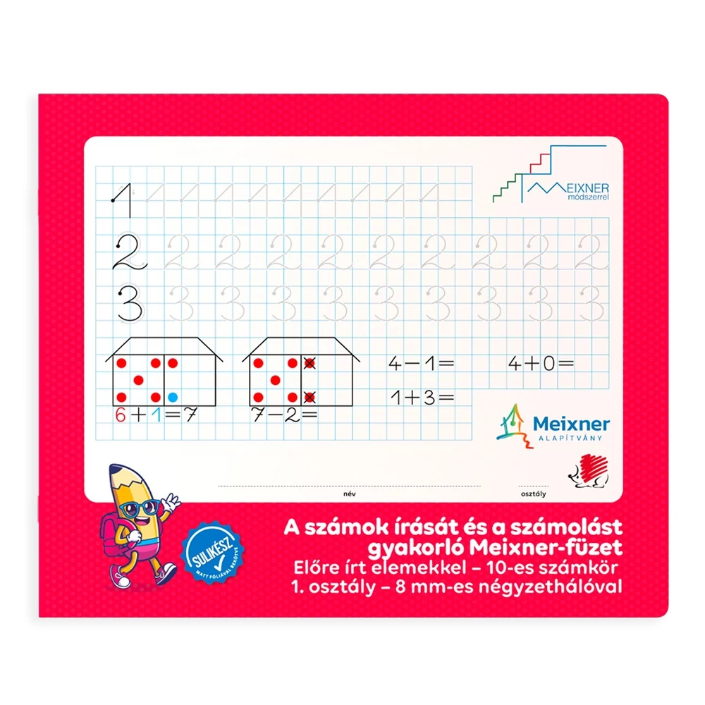 A számok írását és a számolást gyakorló Meixner-füzet az 1. osztályosok számára a 10-es számkörben, amely a Meixner Alapítvány együttműködésével és ajánlásával jött létre. Az első osztályosoknak készült füzetben a nagyobb, 8 mm-es négyzetháló és egyszerű elemekből felépített írásminták segítik a számok és műveleti jelek írásának kialakítását. Hiteles tájékoztatás: Elkötelezettek vagyunk termékeink biztonságának garantálásáért, nyomon követjük a termékbiztonsággal kapcsolatos valamennyi európai uniós és hazai szabályozást és biztosítjuk termékeink azoknak történő megfelelését. Az EU 2023/988-as számú Általános Termékbiztonsági Rendeletét (GPSR) is alkalmazzuk, így ha a termékeink biztonságát illetően fogyasztóként kérdése, észrevétele van, vagy esetleg balesetről van tudomása, kérjük, írja meg nekünk. GPSR: Ars Una Studio Kft., H-1113 Budapest, Csetneki u. 13.,webshop@arsuna.hu, https://arsuna.hu/