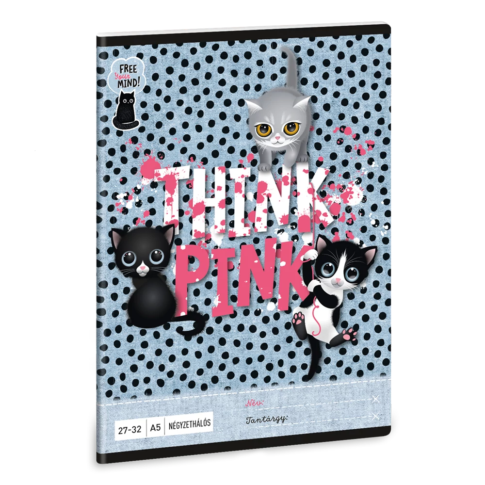 Füzet iskolai A5, 32lap, kockás 27-32 Ars Una THINK-PINK (5285) 23 10db/csomag