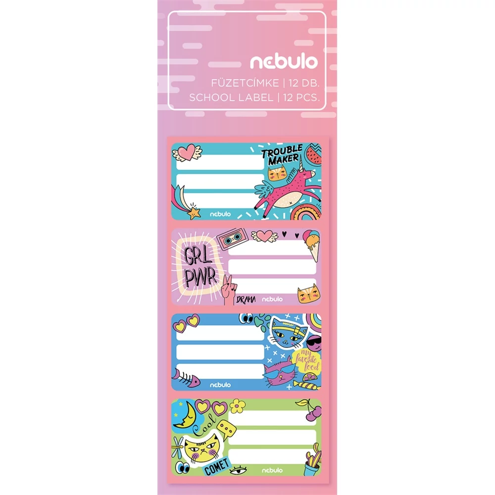 Füzetcímke 12db-os, Girl Power, vegyes minták, Nebulo