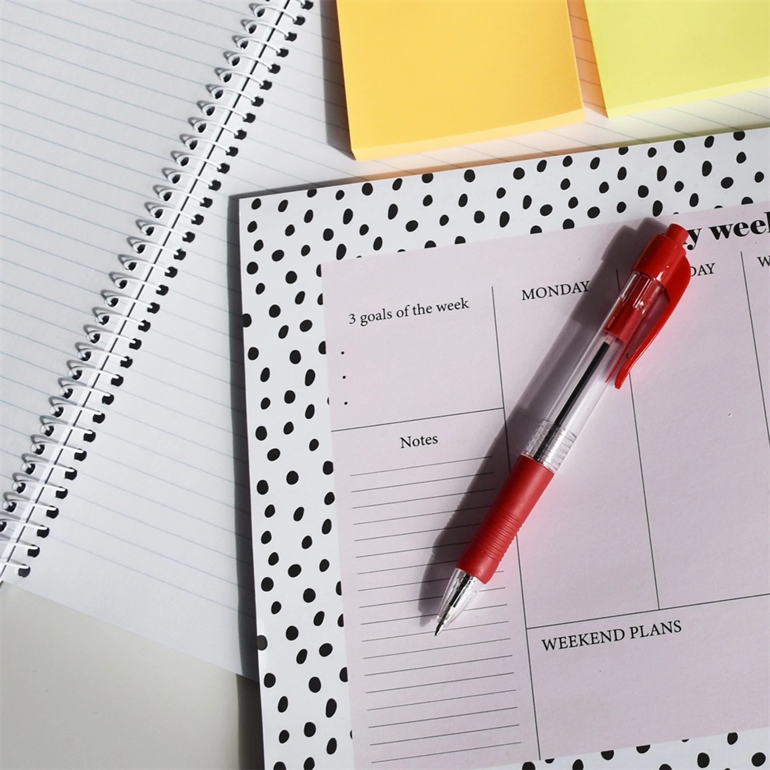 Nyomógombos mechanikájú golyóstoll, áttetsző tolltesttel, amely az írásszínhez igazodik.