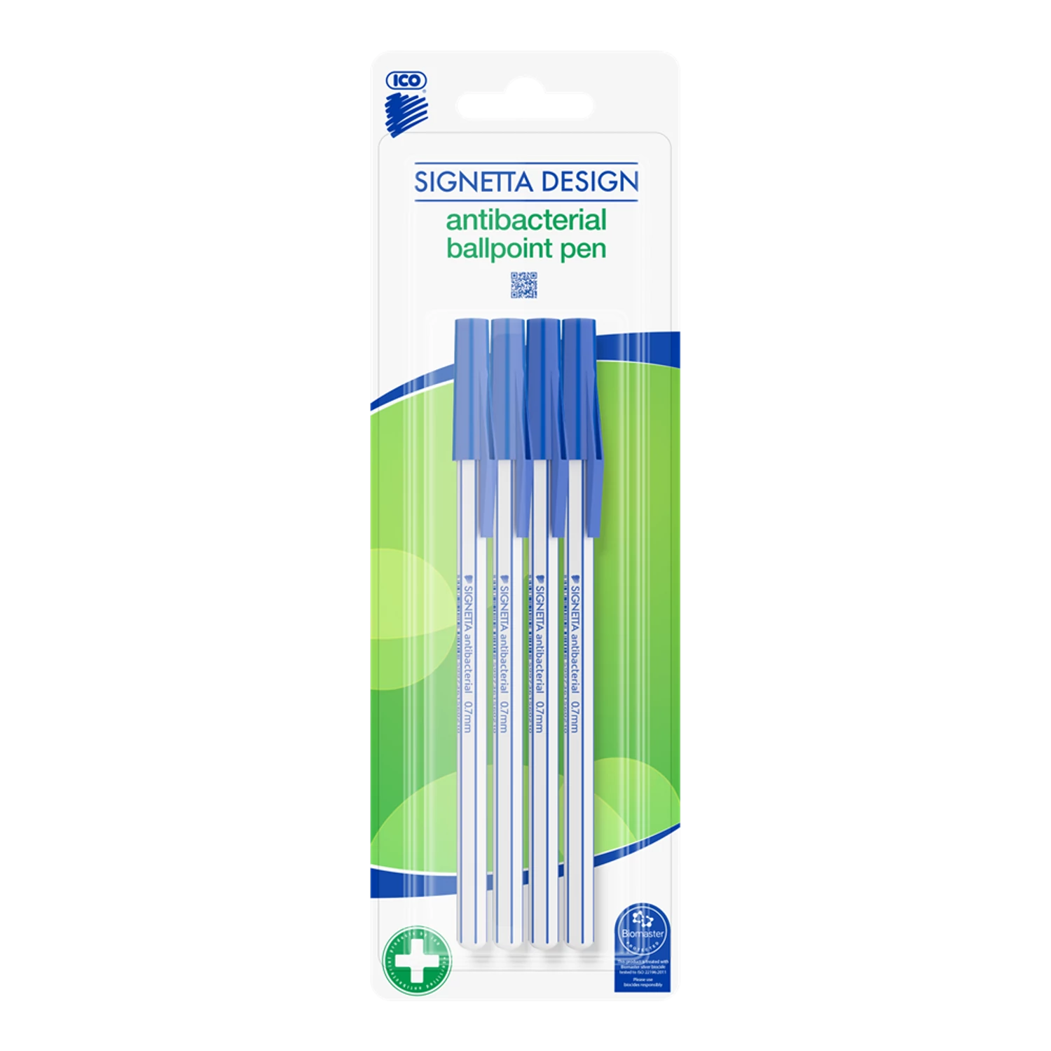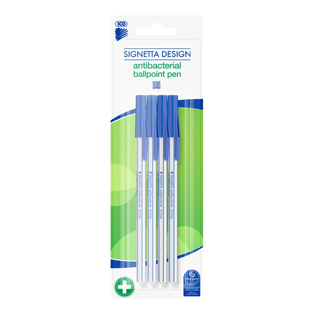Golyóstoll 0,7mm, kupakos antibakteriális 4-es klt Ico Signetta, írásszín kék