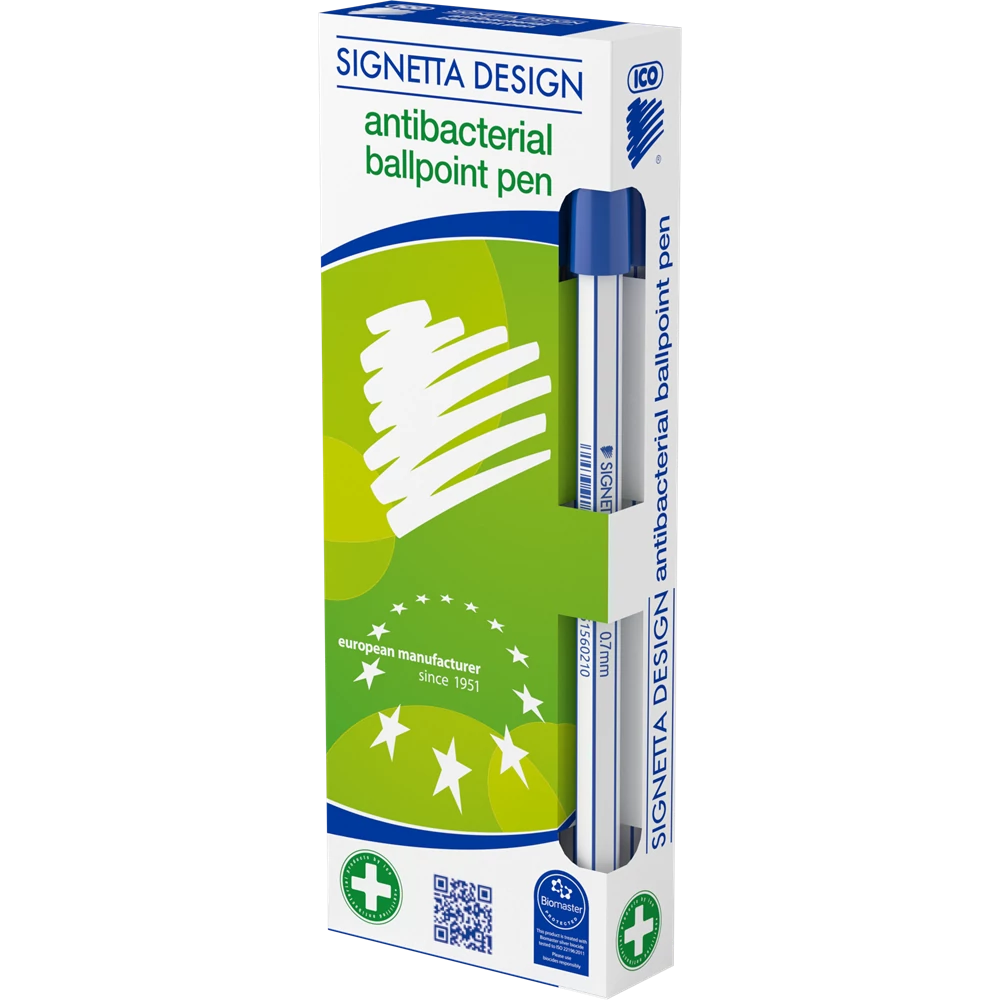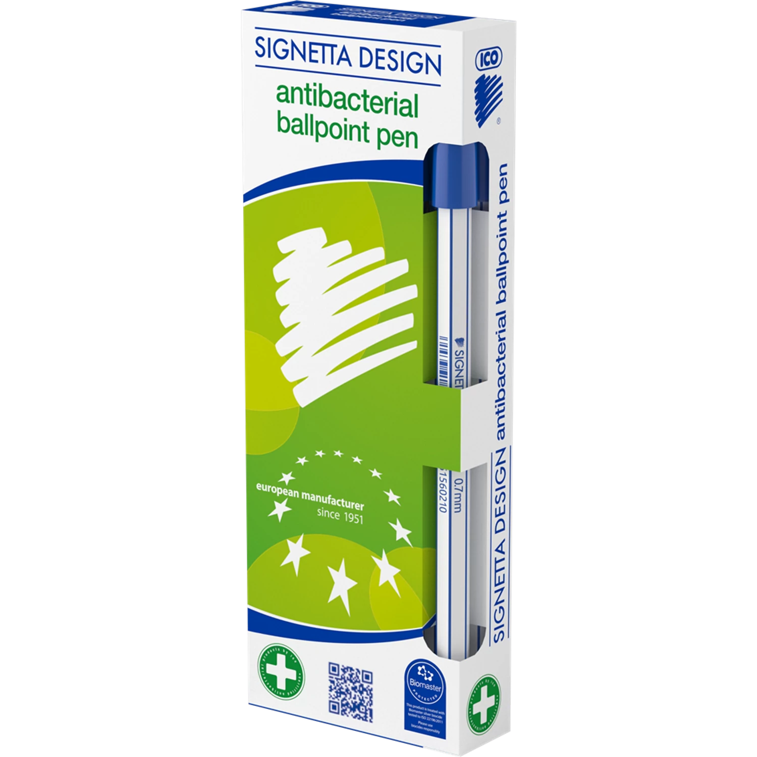 Golyóstoll 0,7mm, kupakos antibakteriális Ico Signetta, írásszín kék