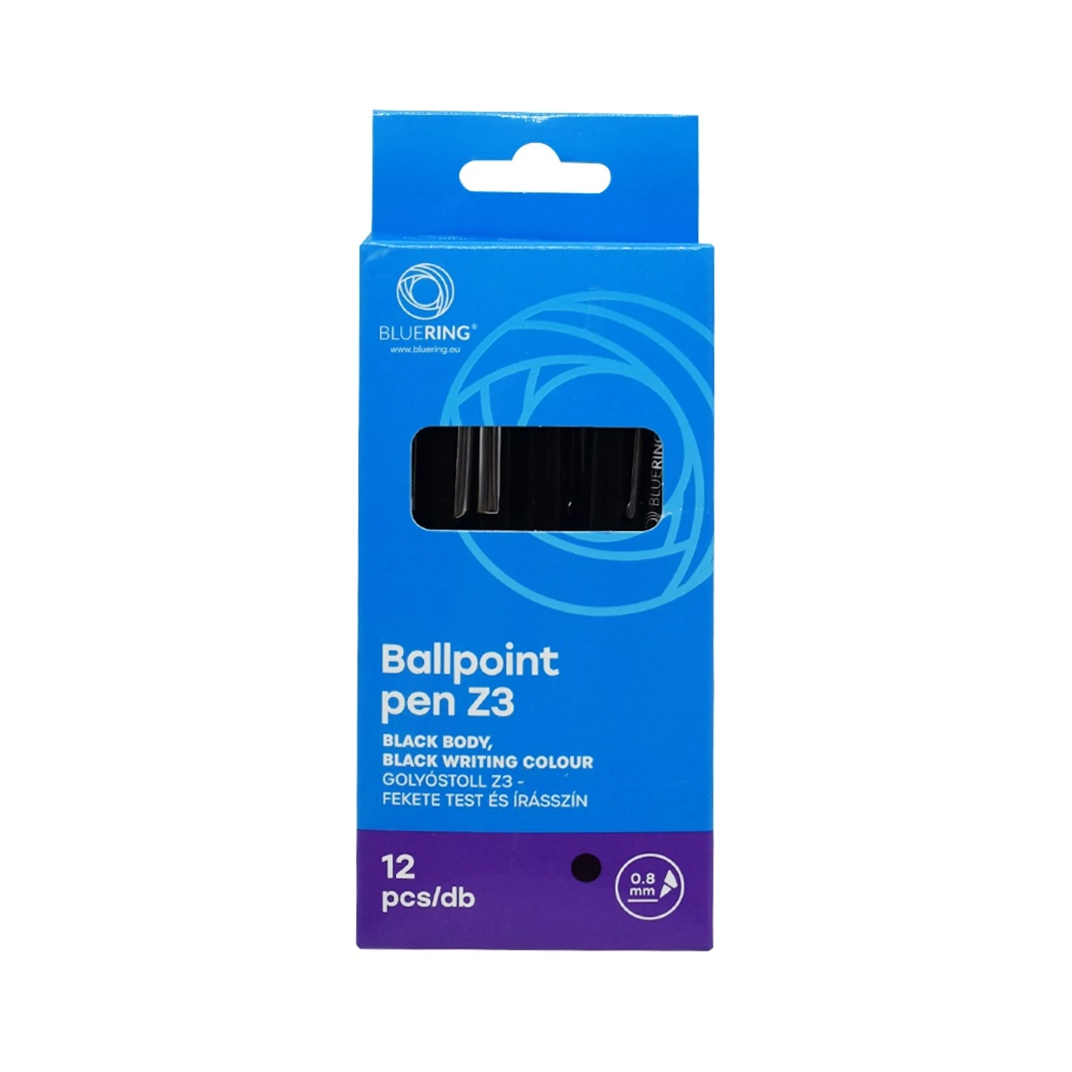 Golyóstoll 0,8mm, nyomógombos műanyag fekete test, Bluering® Z3, írásszín fekete