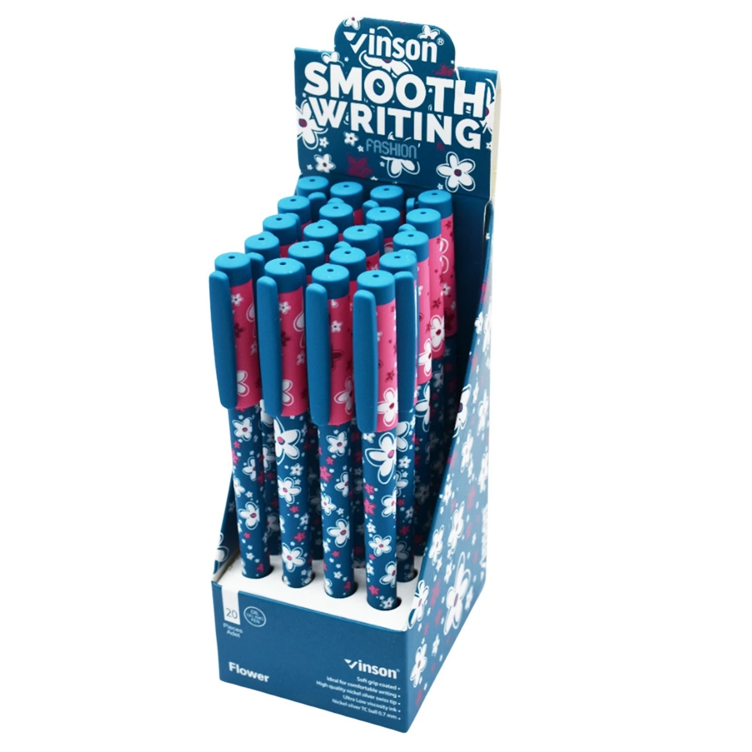 Golyóstoll kupakos, 0,7mm Vinson Flower A18 vegyes test displ 20 db/display