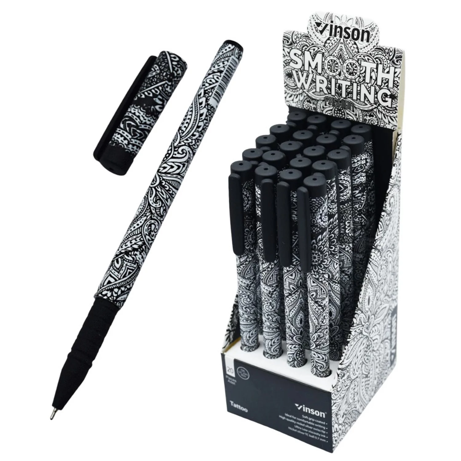 Golyóstoll kupakos, 0,7mm Vinson Tattoo A3 vegyes test displ 20 db/display