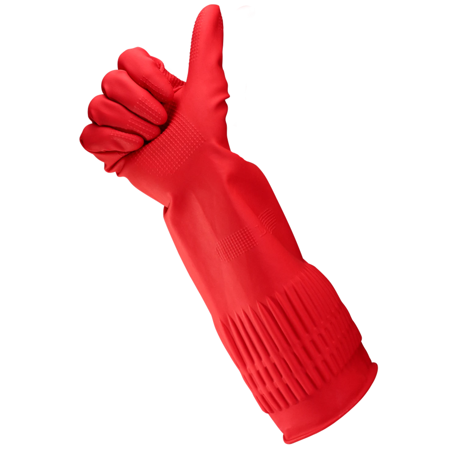 A legtöbb hagyományos gumikesztyű csuklóig ér, ami sok esetben nem nyújt elegendő védelmet. Egy extra hosszú, 38 cm-es gumikesztyű: