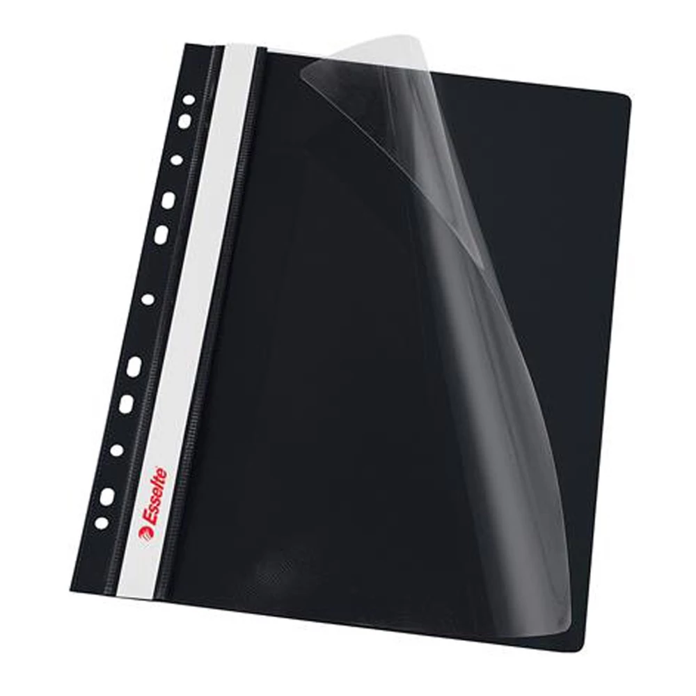 Gyorsfűző lefűzhető A4+, PP – Esselte Vivida fekete (10 db/csomag) – 160 lapos kapacitás, iratrendezőbe is mehet