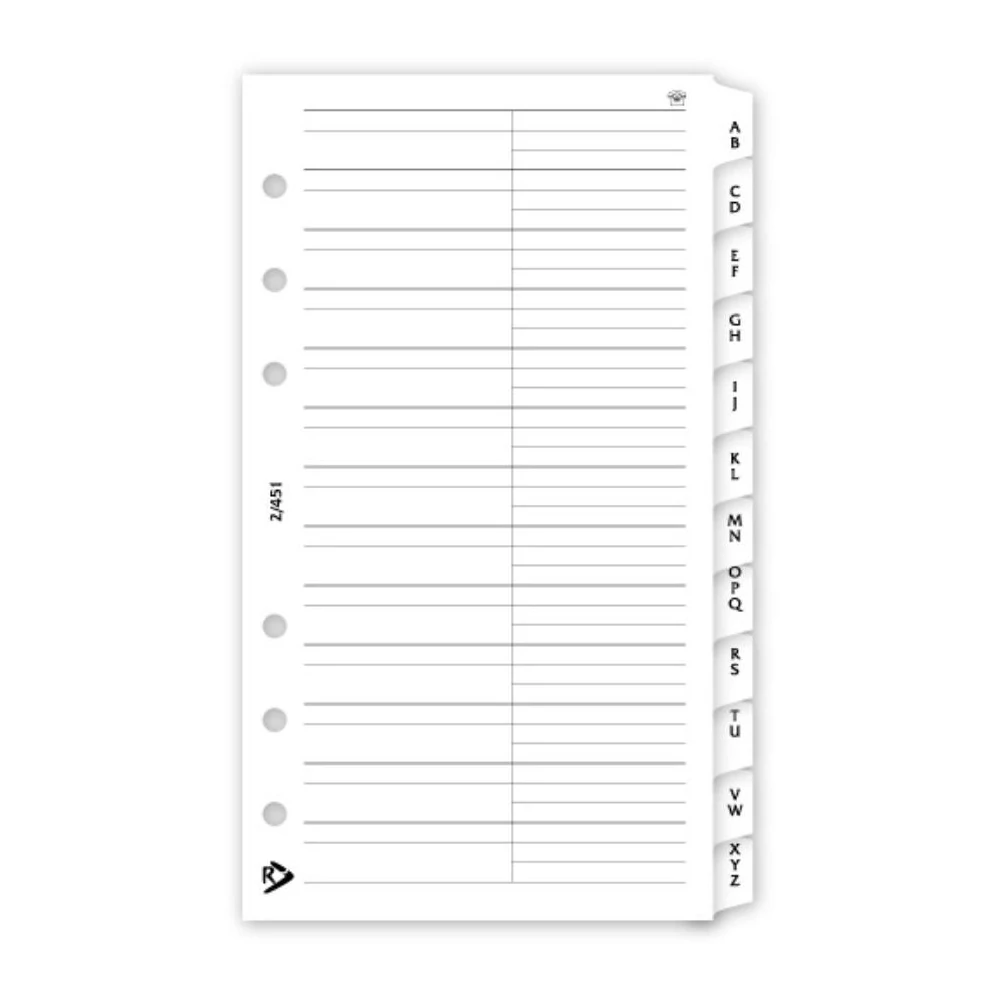 Gyűrűs kalendárium utántöltő csomag 2/451 fehér papíros telefon regiszter M mérethez Realsystem
